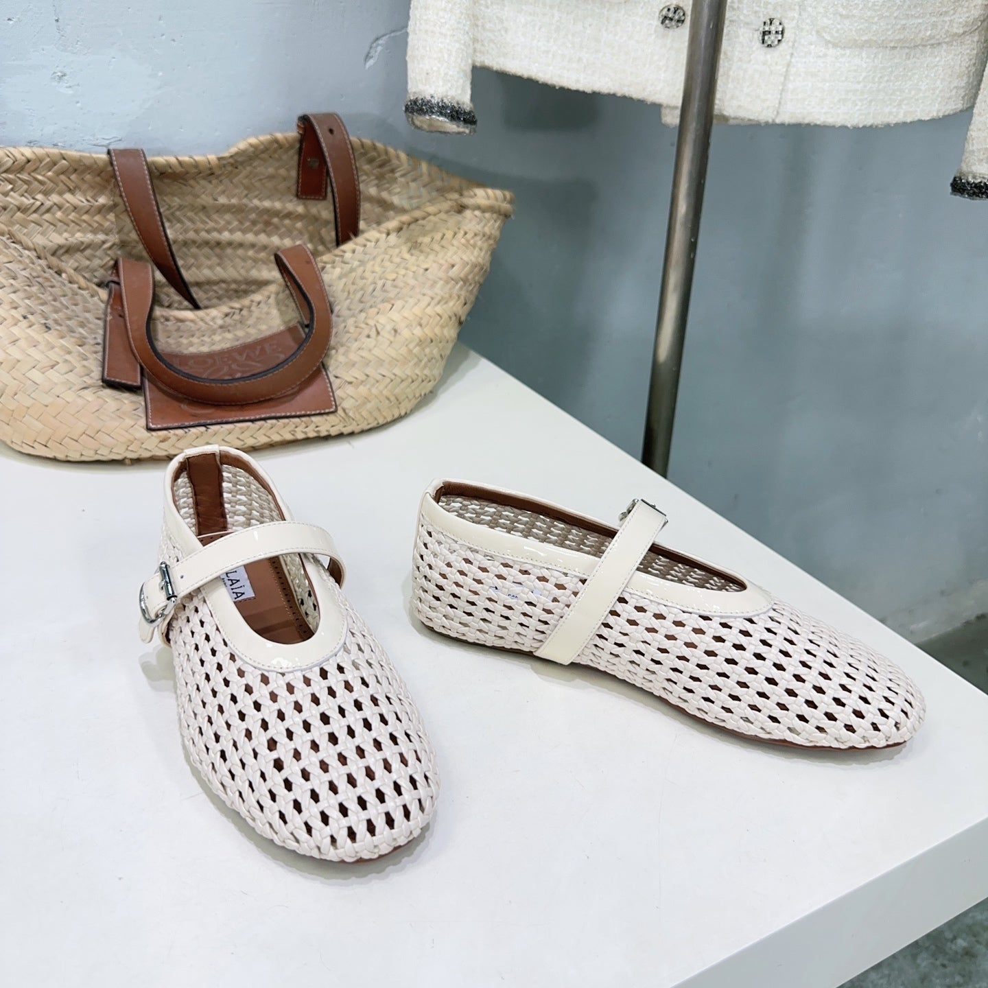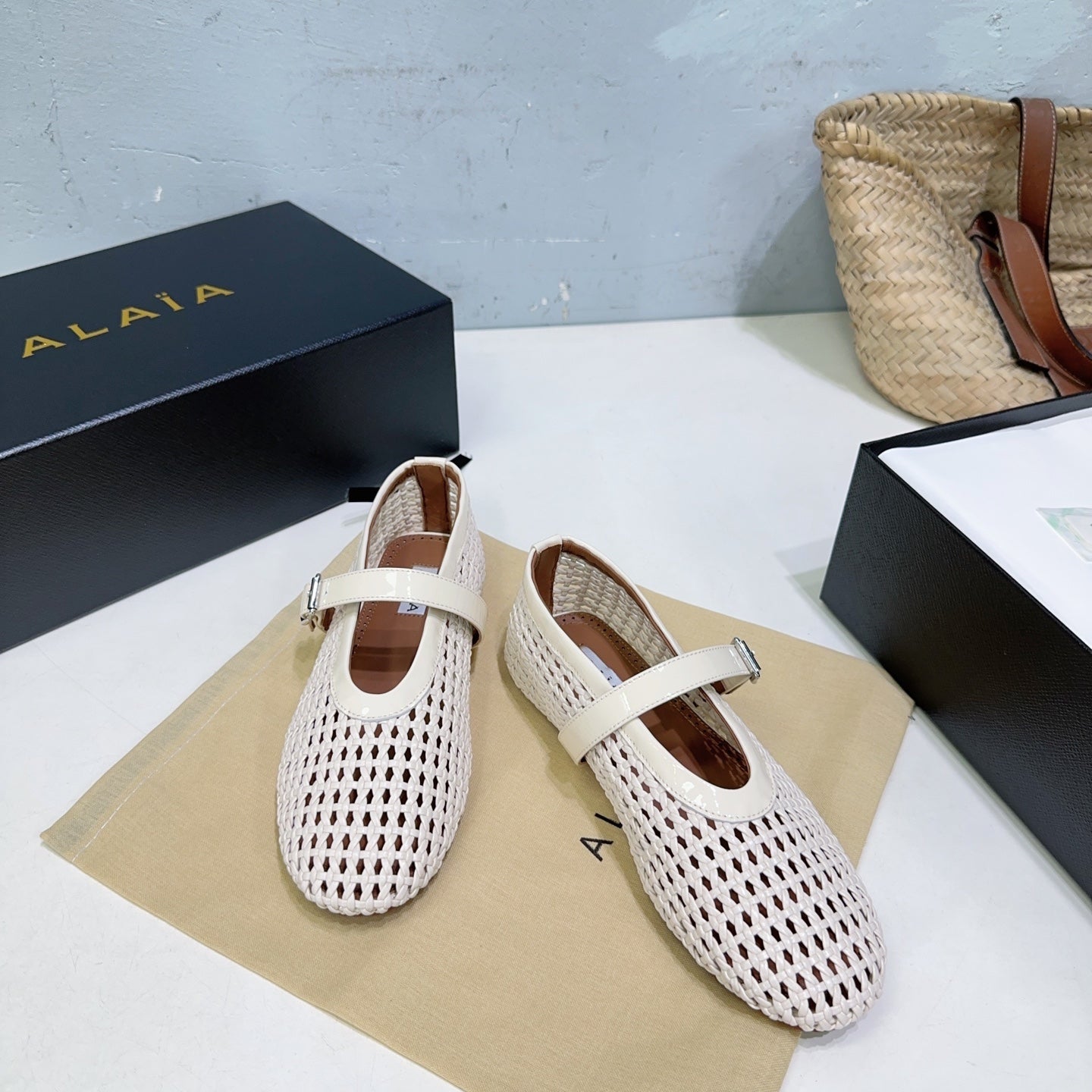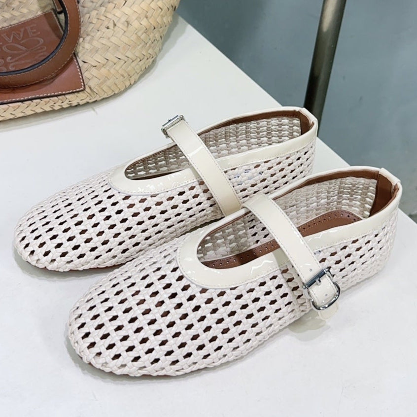 Alaia Braided Hollow Ballet Flats Ivory Cowhide 300043