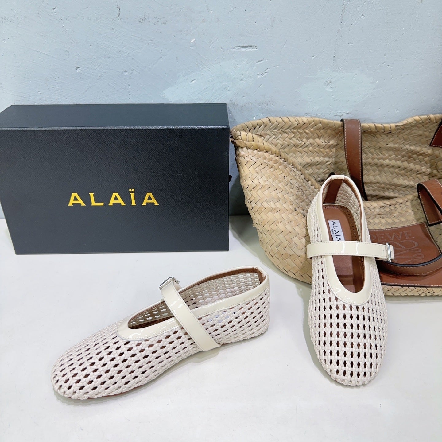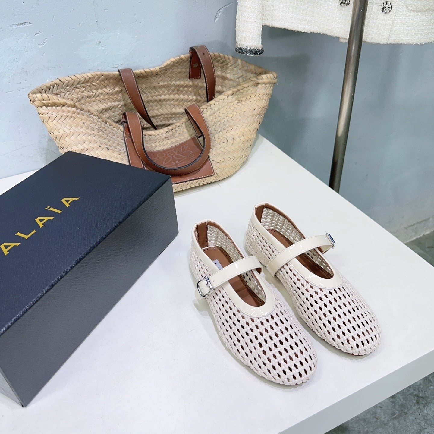 Alaia Braided Hollow Ballet Flats White Cowhide 300044