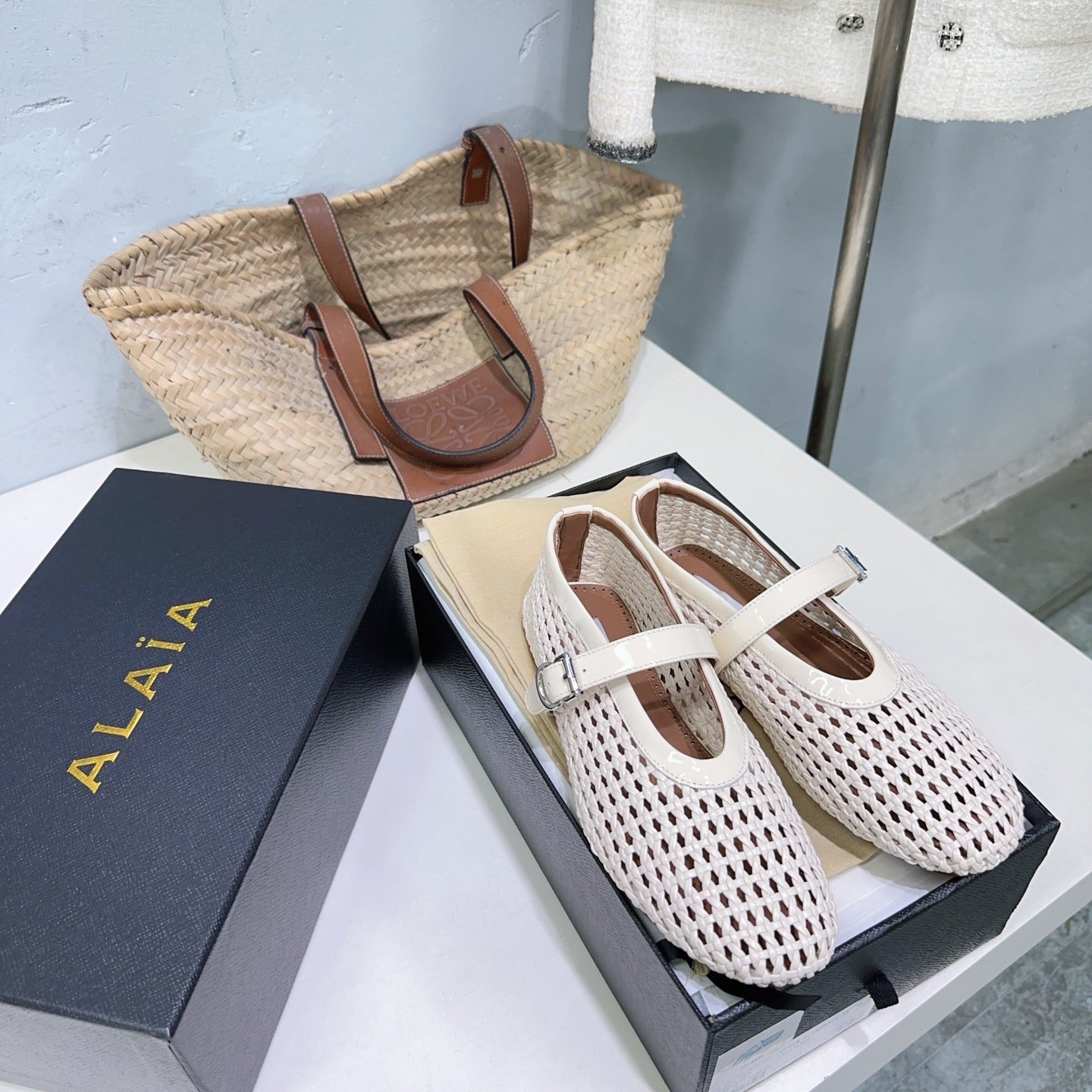 Alaia Braided Hollow Ballet Flats Black Cowhide 300041