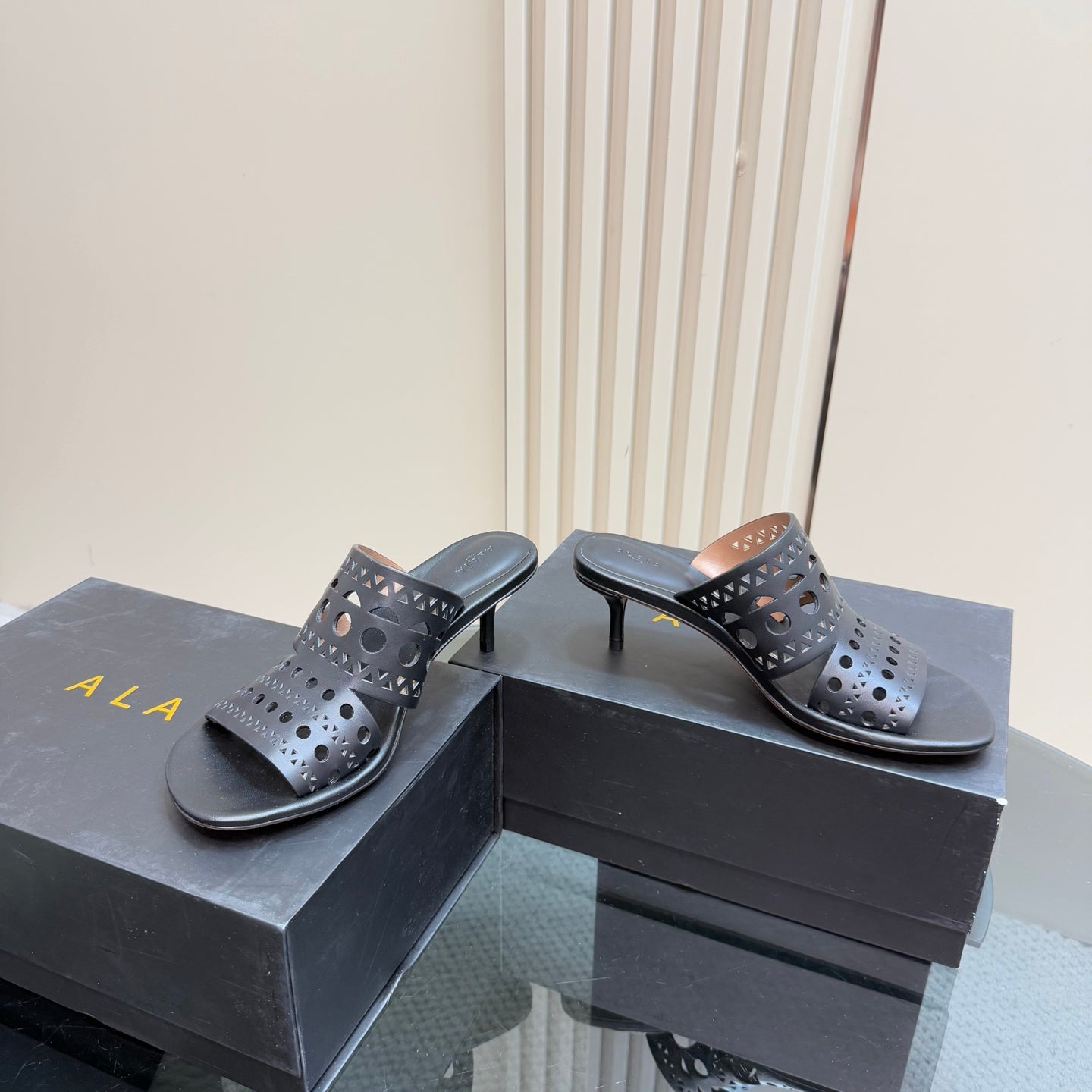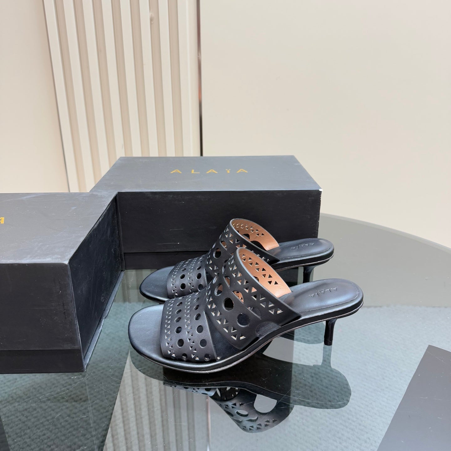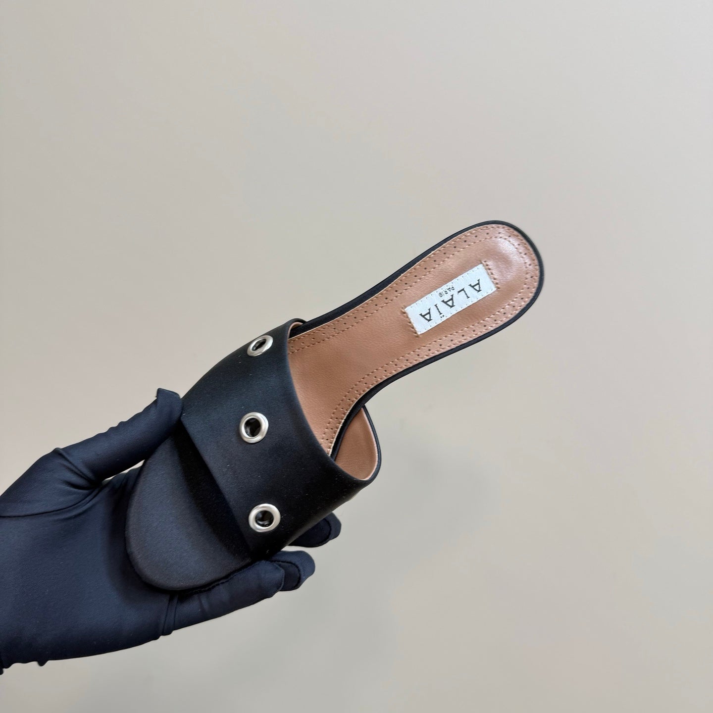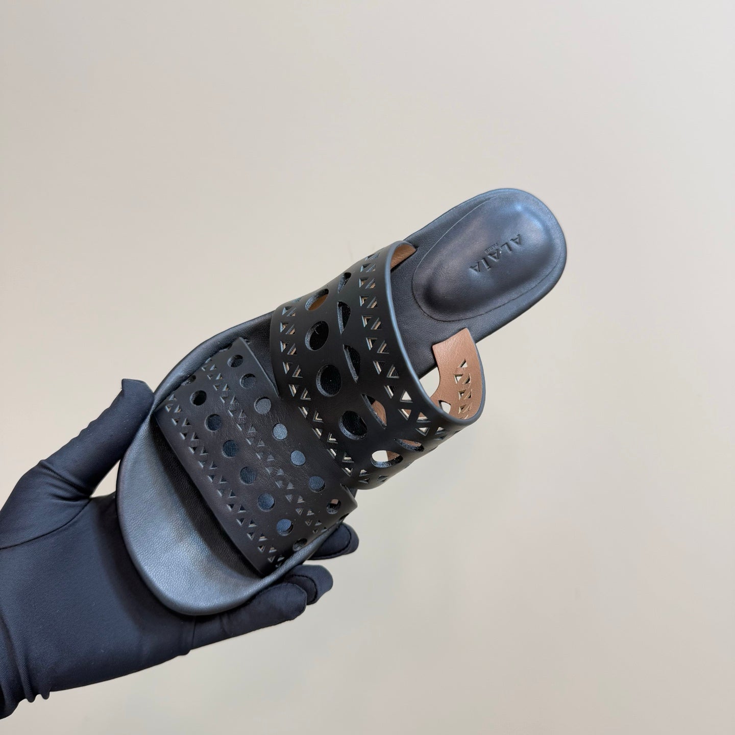 Alaia 2025 Hollow Slippers Black Leather 293653