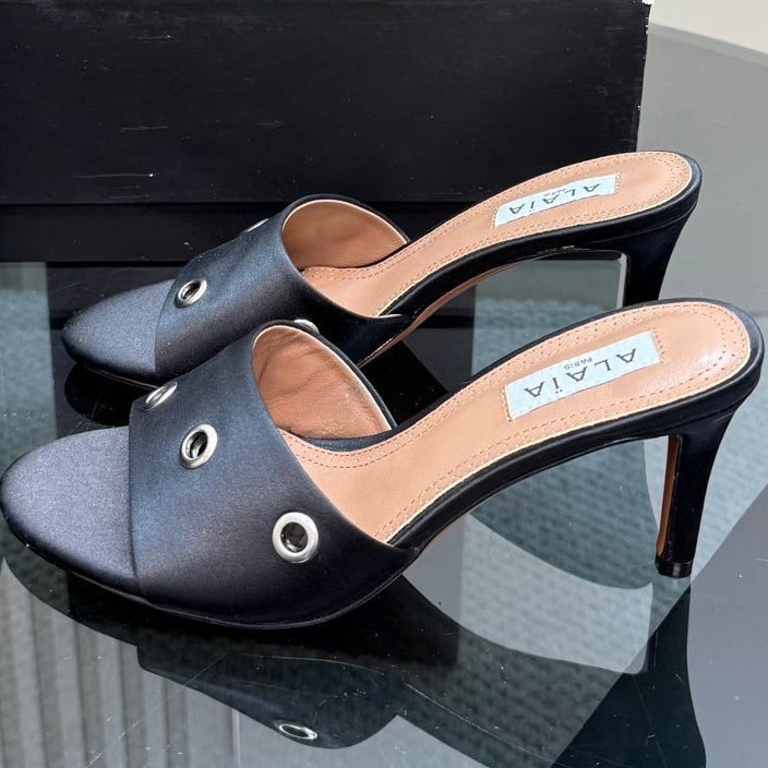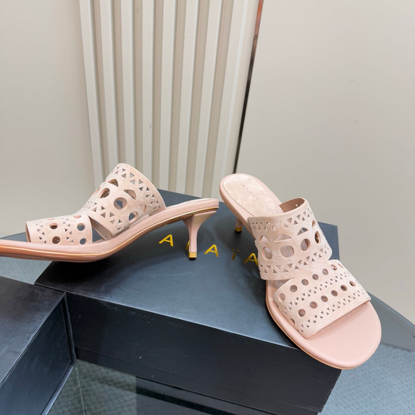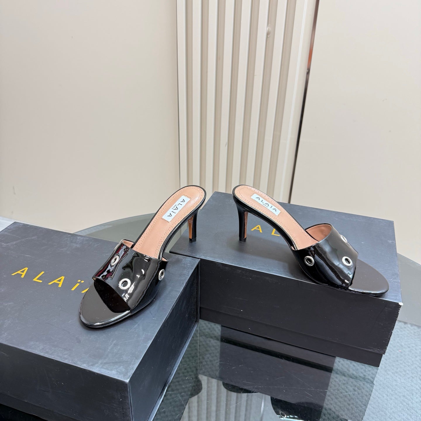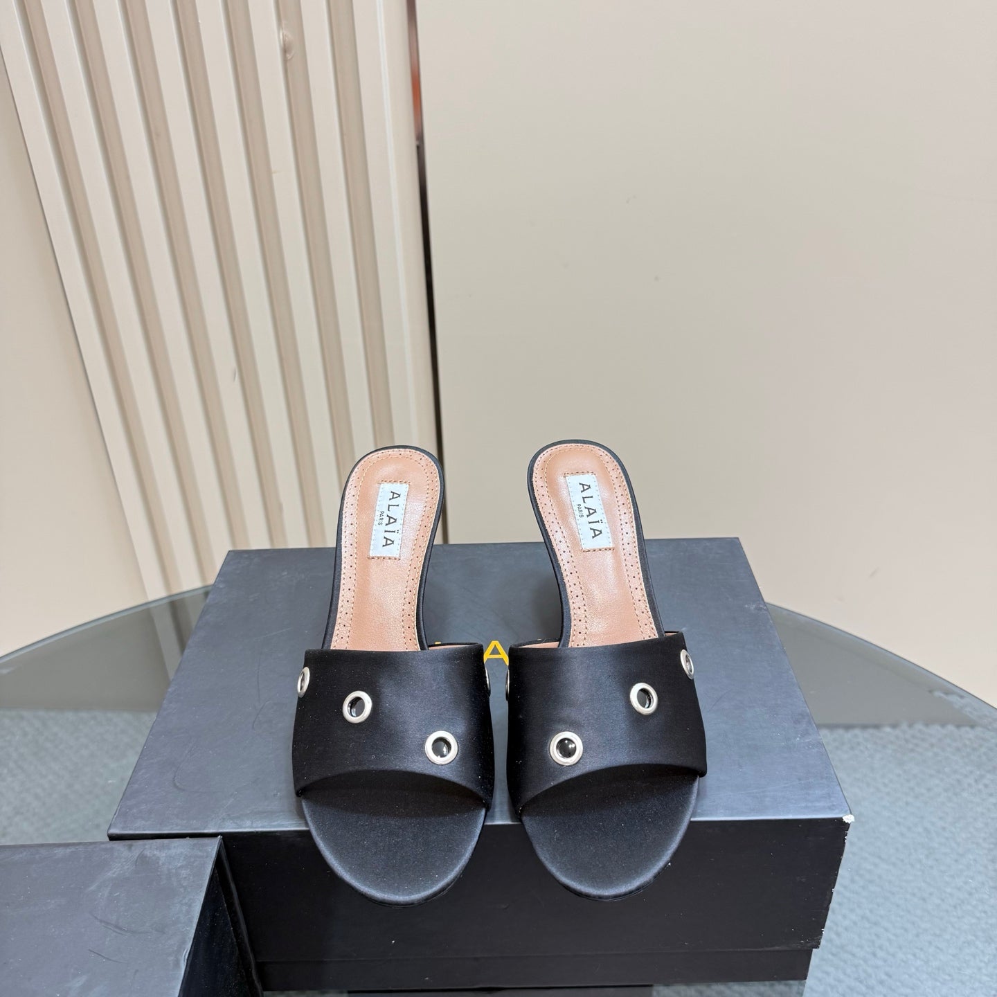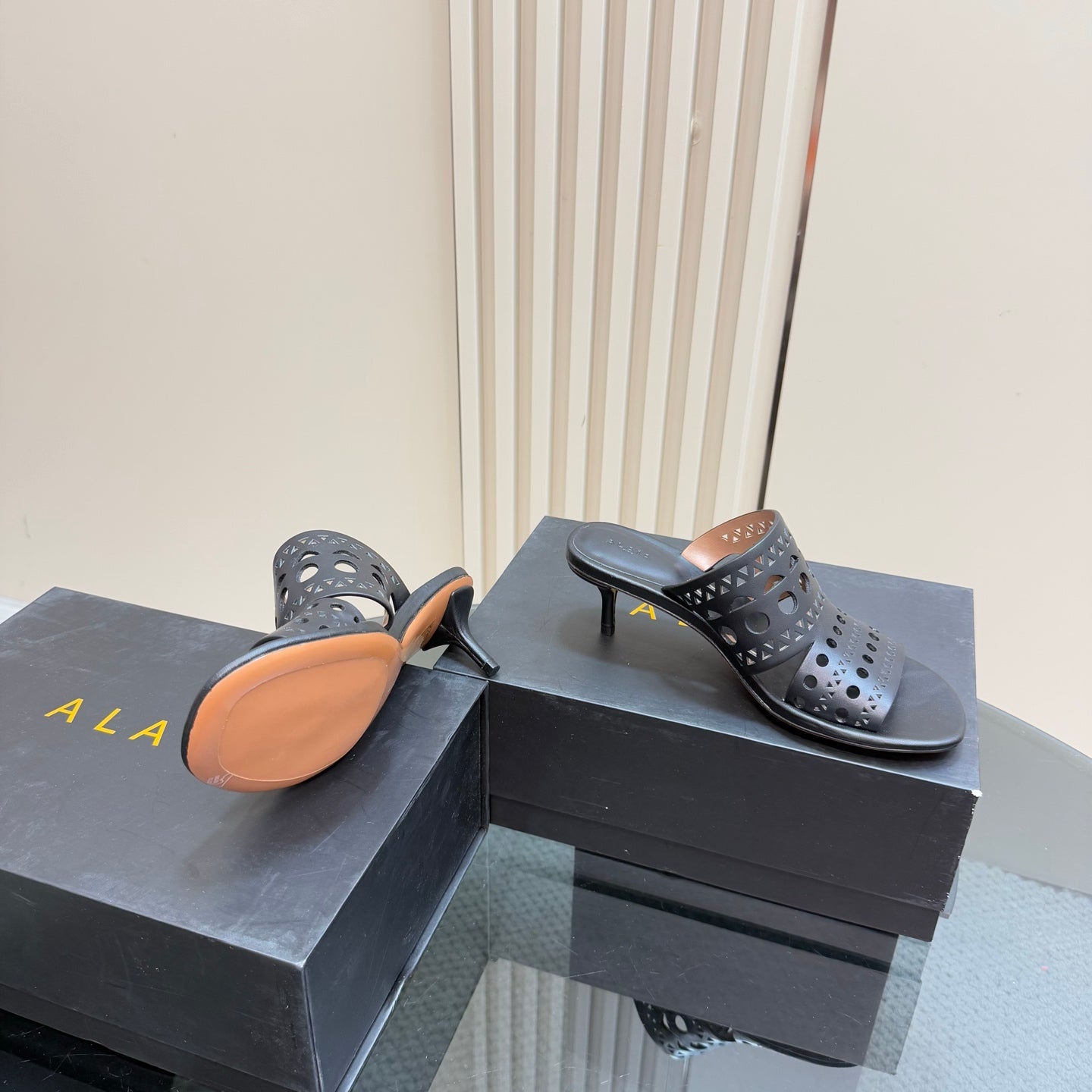Alaia 2025 Hollow Slippers Black Leather 293653