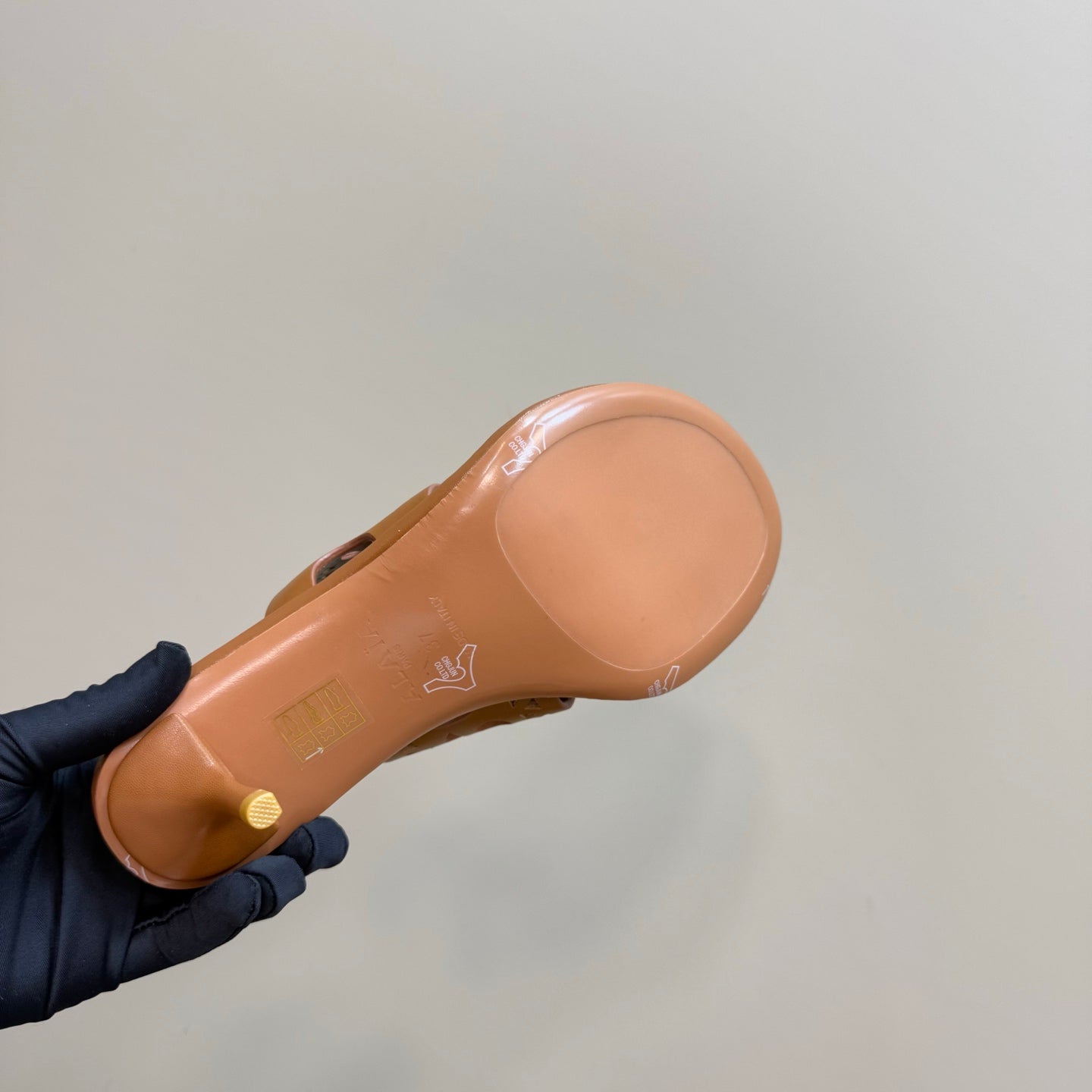 Alaia 25 Cube Thong Mules Brown Satin Sheepskin 297040