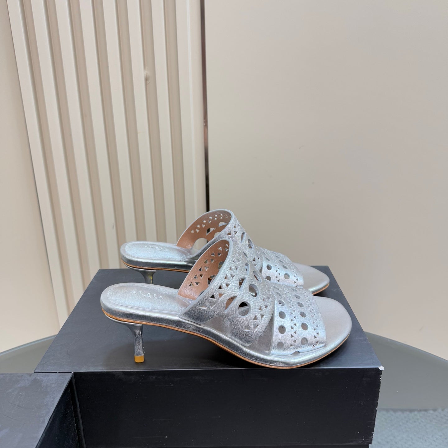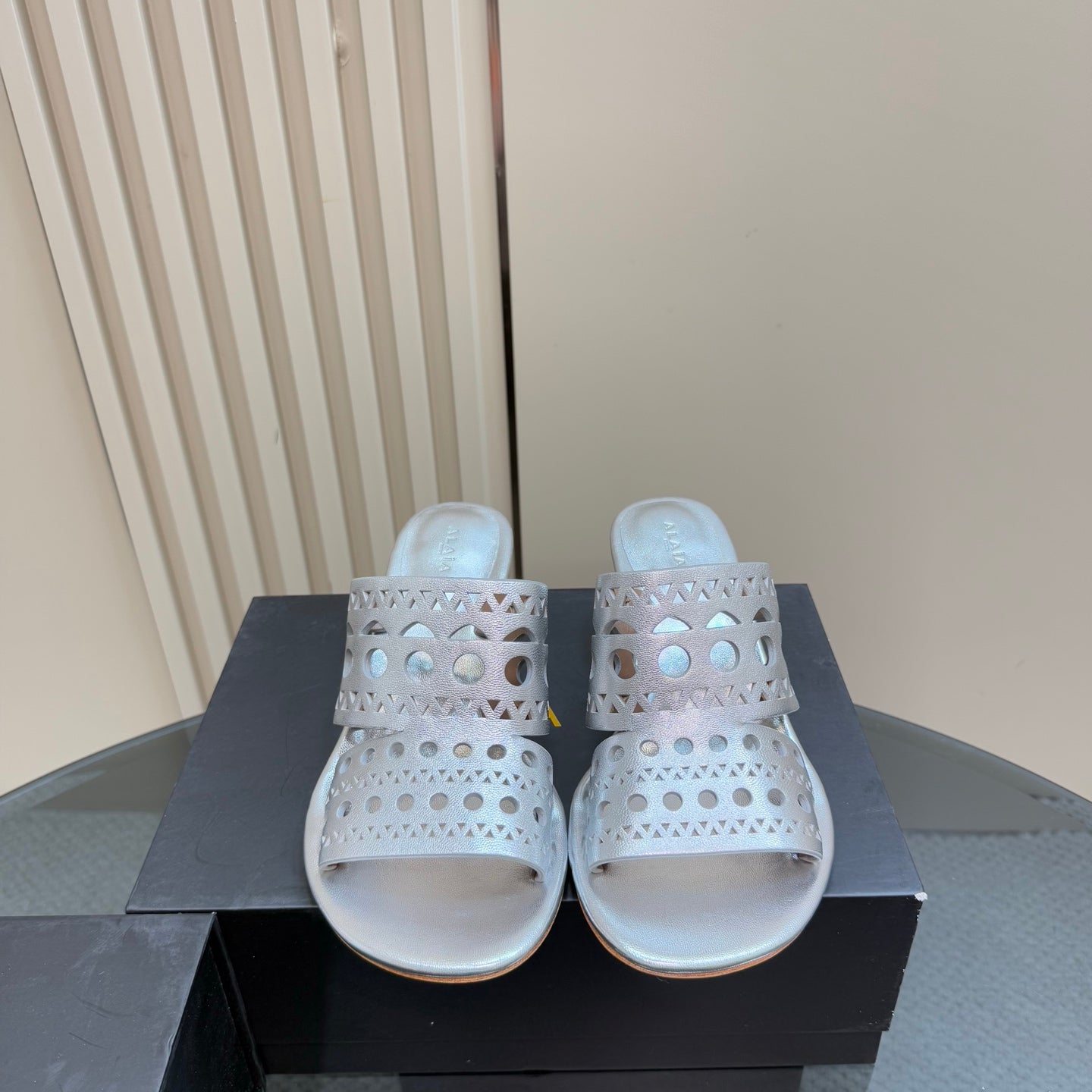 Alaia 2025 Vienne Slippers Silver Lambskin 293656