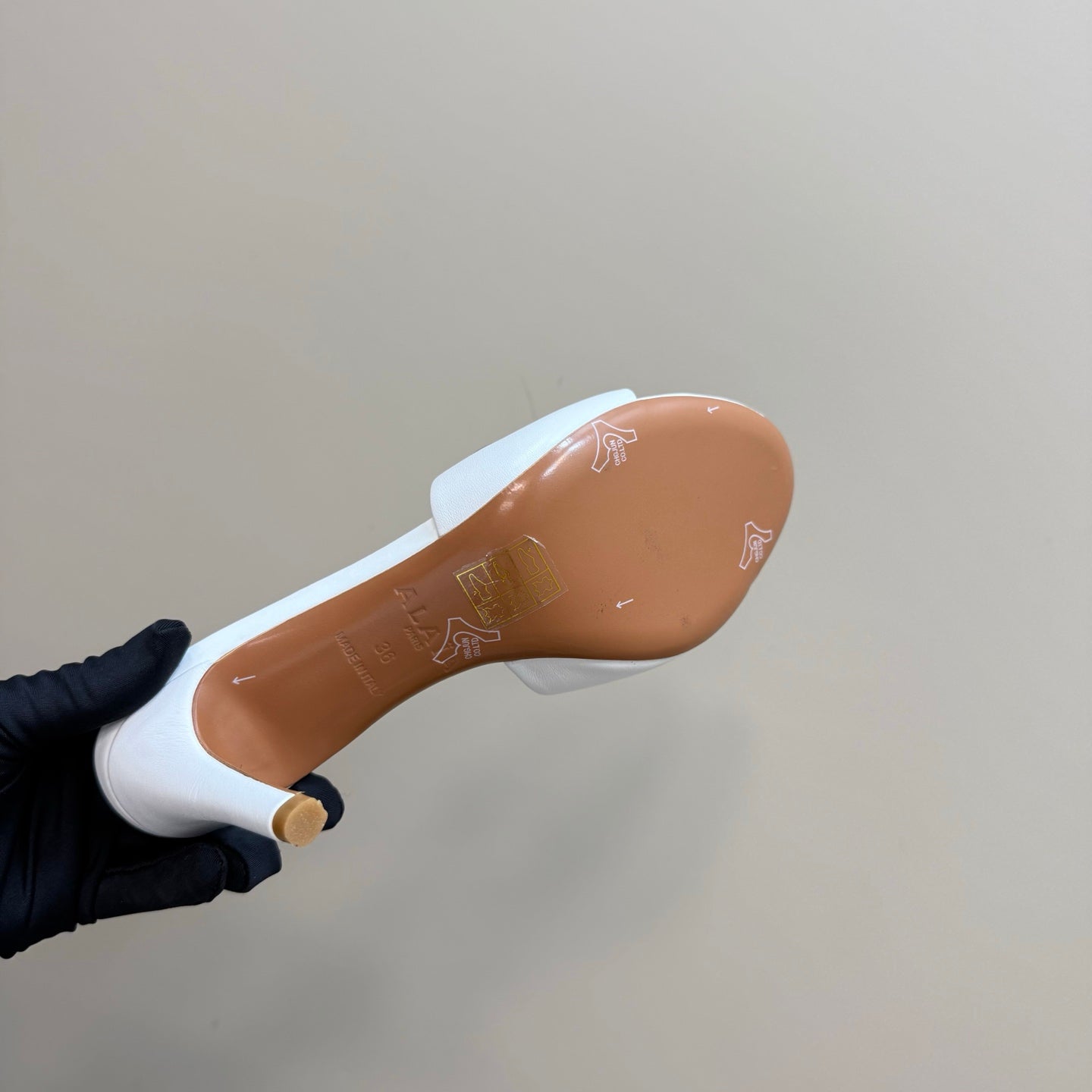 Alaia 25 Cube Thong Mules White Sheepskin 296089