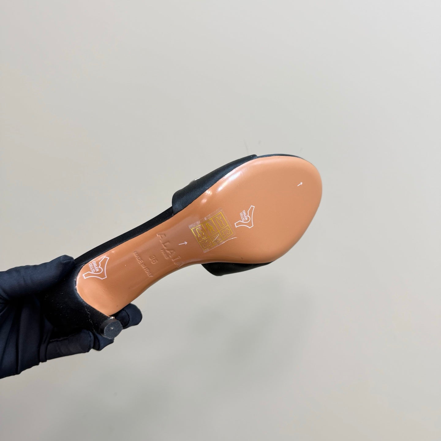 Alaia 25 Cube Thong Mules Black Satin Sheepskin 297039