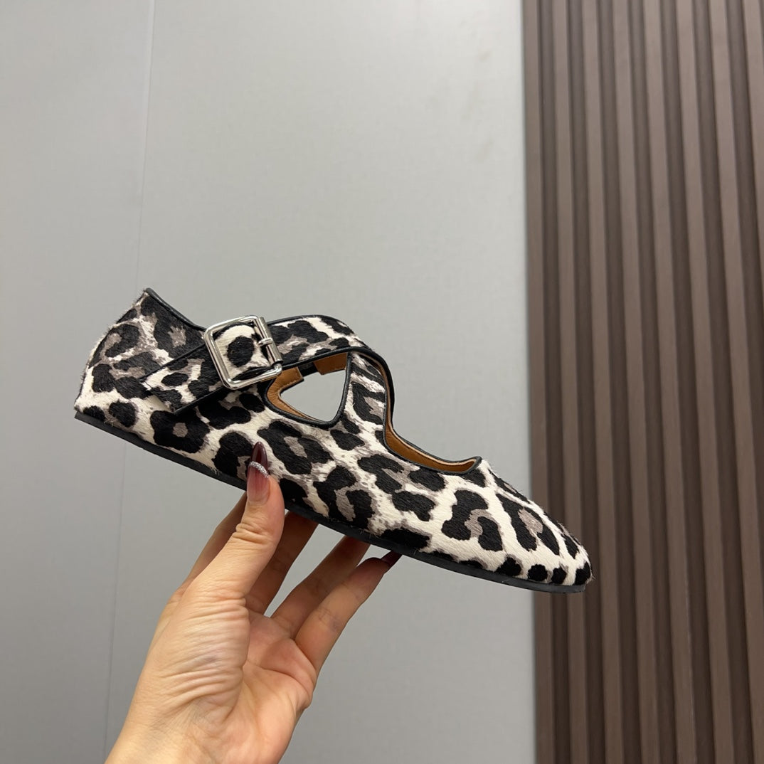 Alaila Biker Ballet Flats In Light Grey Cowhide 911442