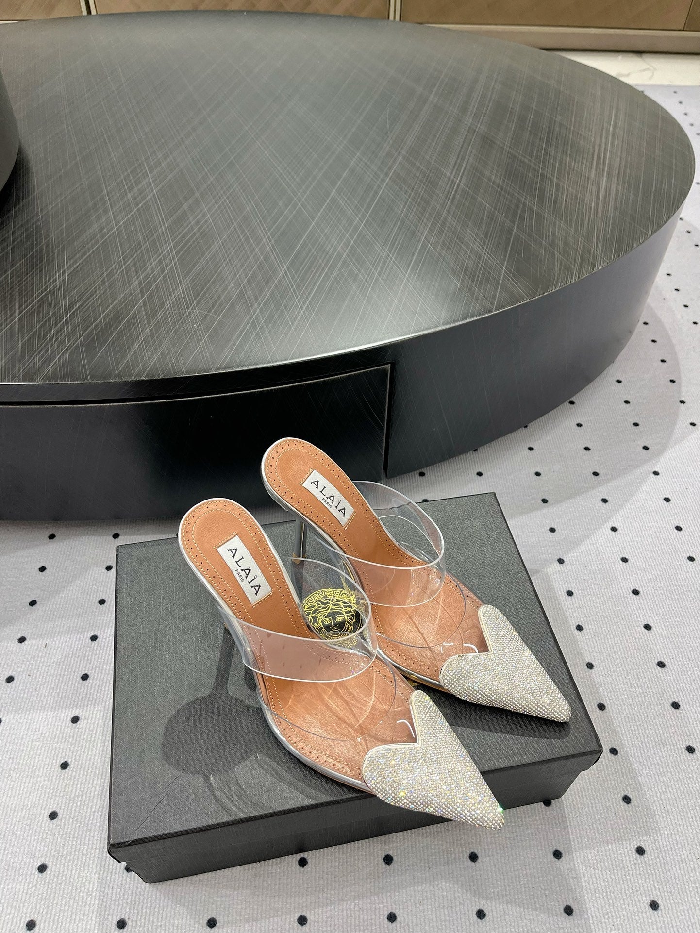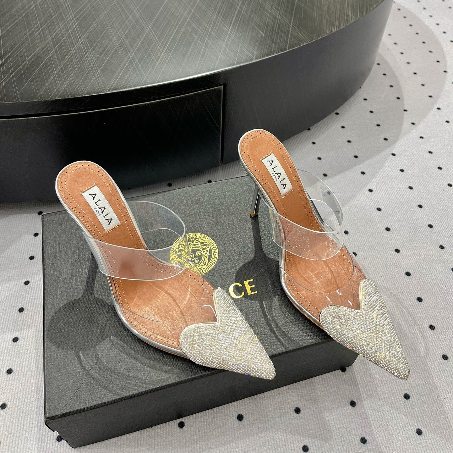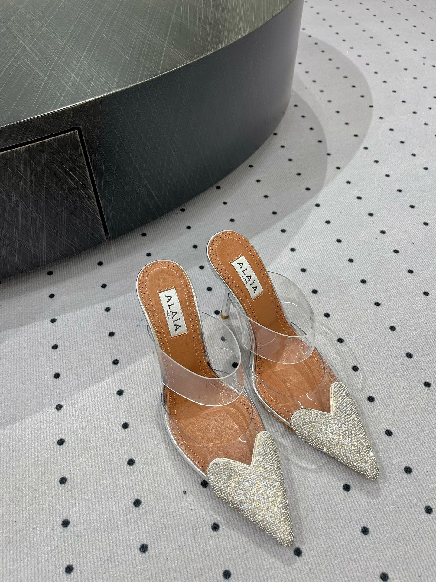 ALAIA Le Coeur Mules White With Rhinestones Lambskin 954821