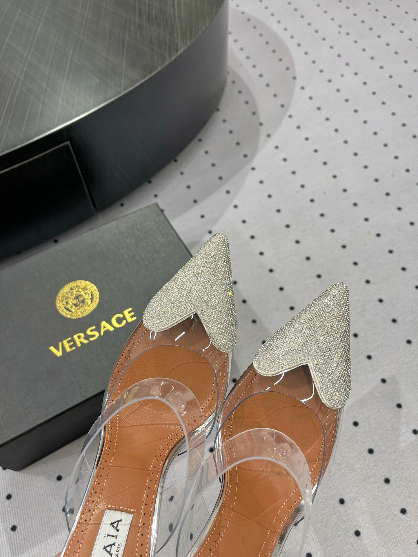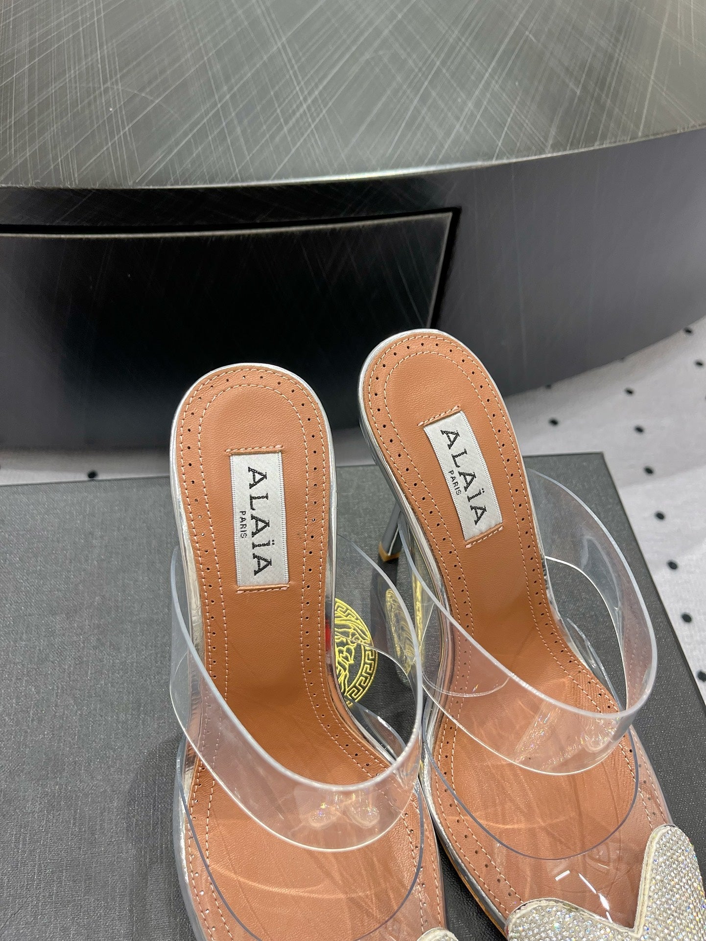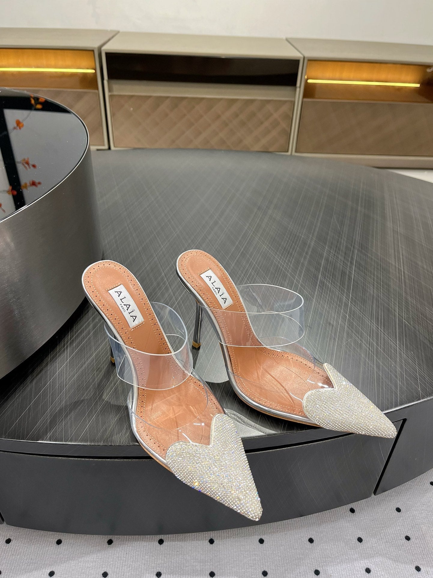 ALAIA Le Coeur Mules White With Rhinestones Lambskin 954821