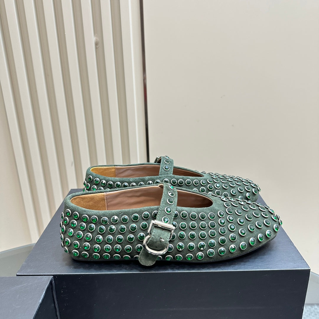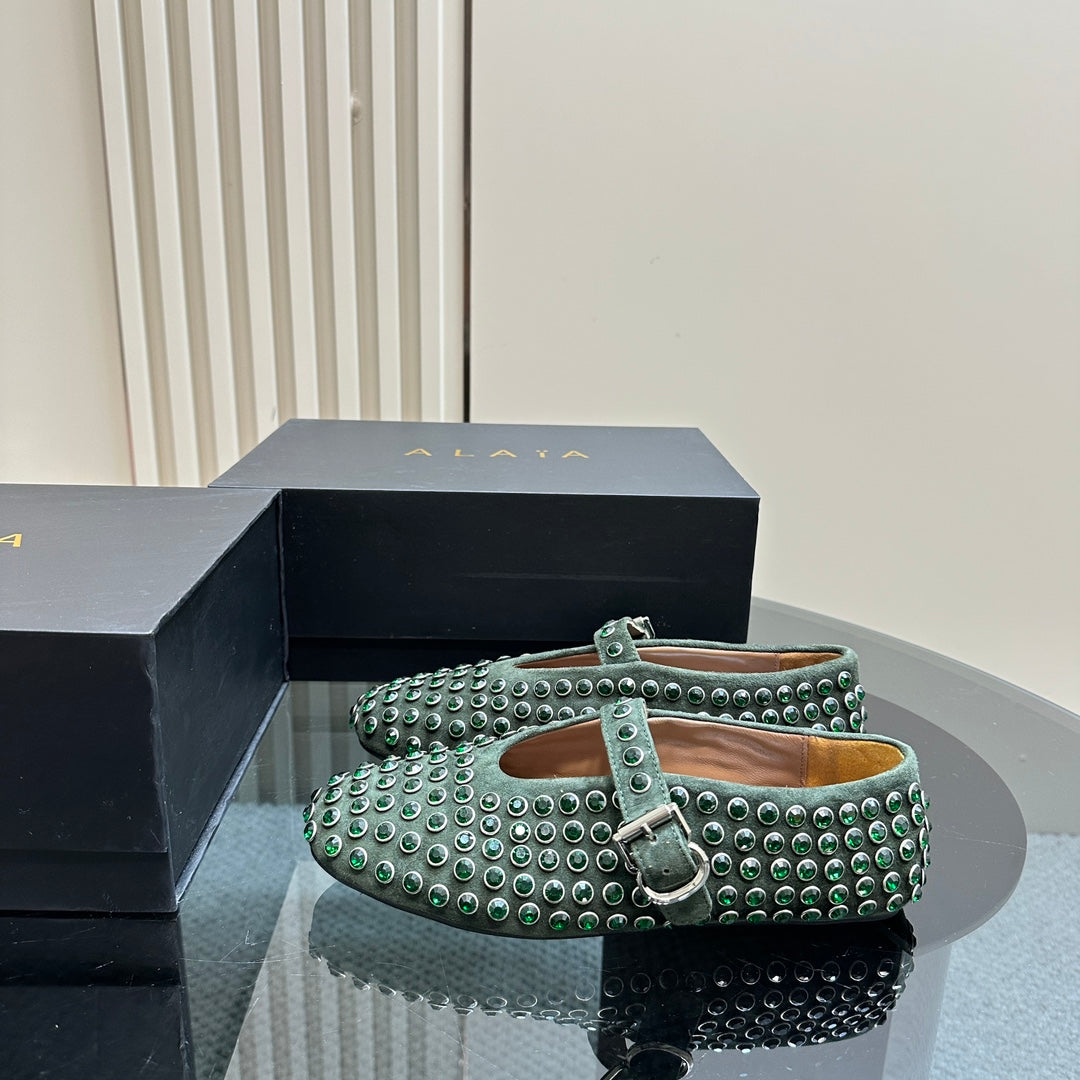 Alaia Strass Suede Ballet Flats In Dark Green 999318