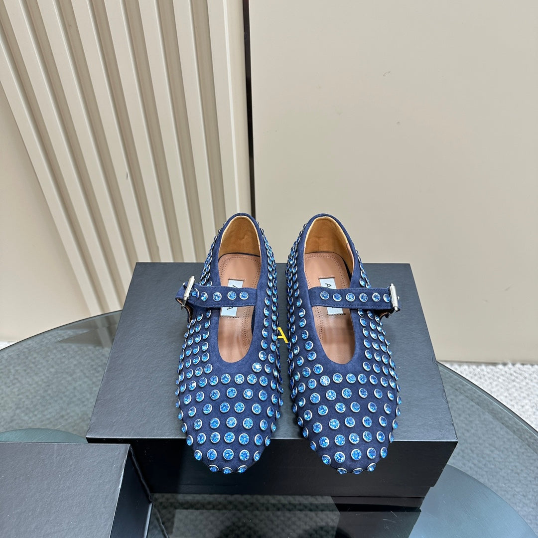 Alaia Strass Suede Ballet Flats In Dark Blue 999320