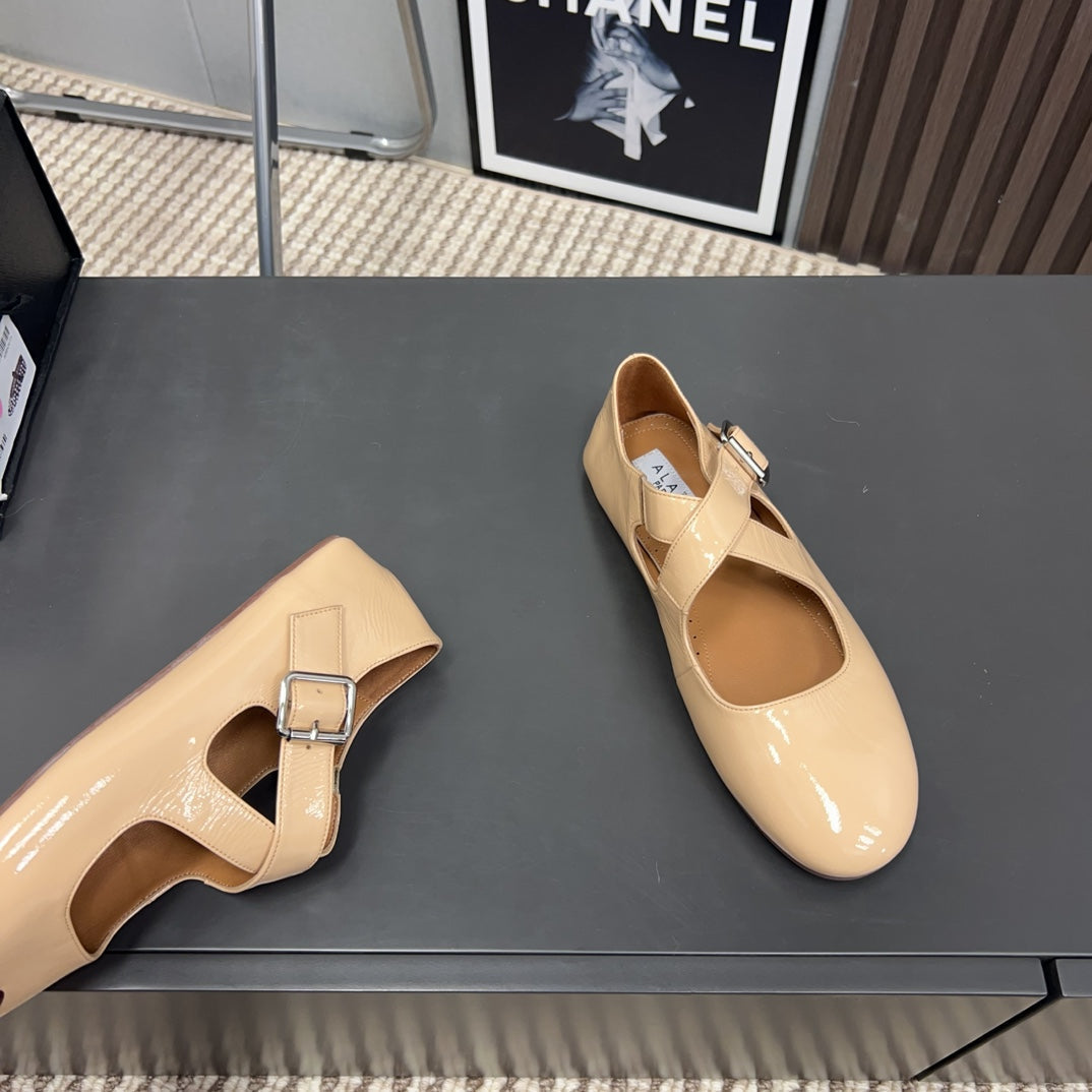 Alaila Sphere Ballet Flats In Beige Glossy Calfskin 964202