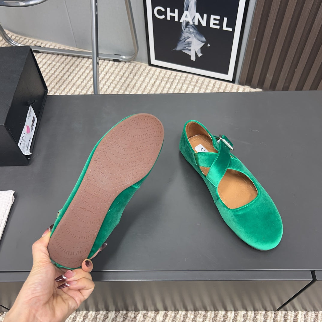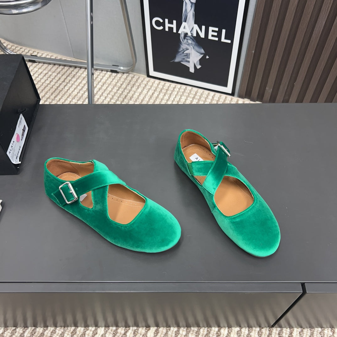 ALAIA BALLET FLATS IN EMERALD GREEN VELVET