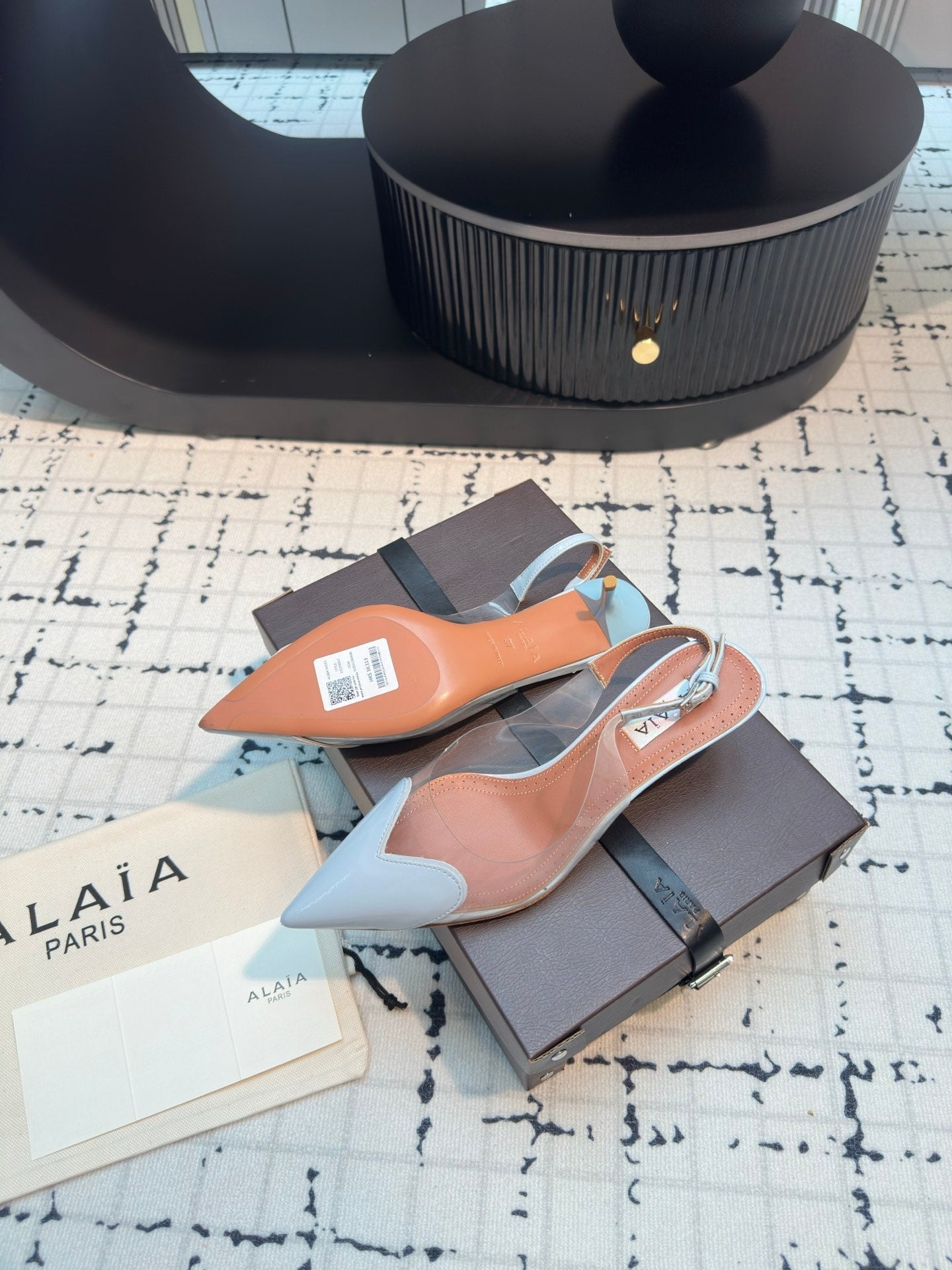 Alaia Heart 50mm Heels Slingbacks Blue Sheepskin 810208