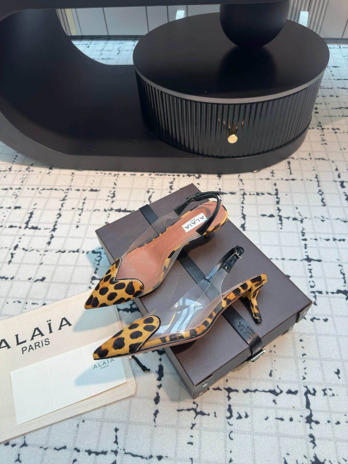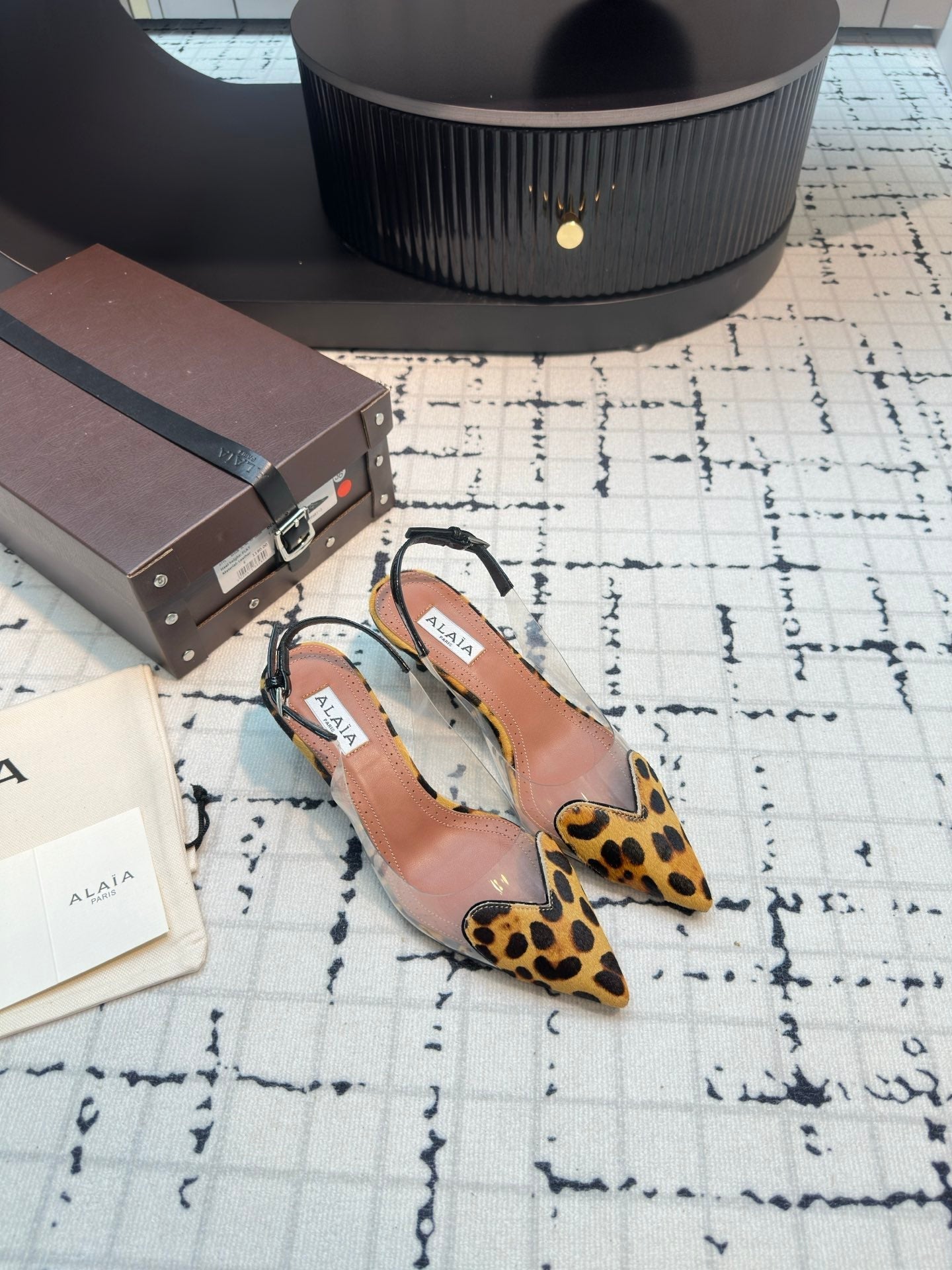Alaia Heart 50mm Heels Slingbacks Leopard Sheepskin 810203