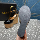 ALAIA WEDGE PUMP 15 CM IN BLACK LAMBSKIN AND BEIGE RUBBER