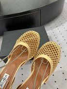 Alaila High Fishnet Pumps 90mm In Light Yellow Mesh Fabric 954852