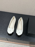 ballet flat flower white calfskin black patent calfskin