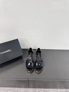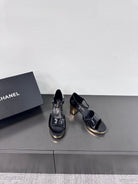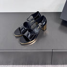 BLOCK HEEL SANDALS BLACK SHEEPSKIN