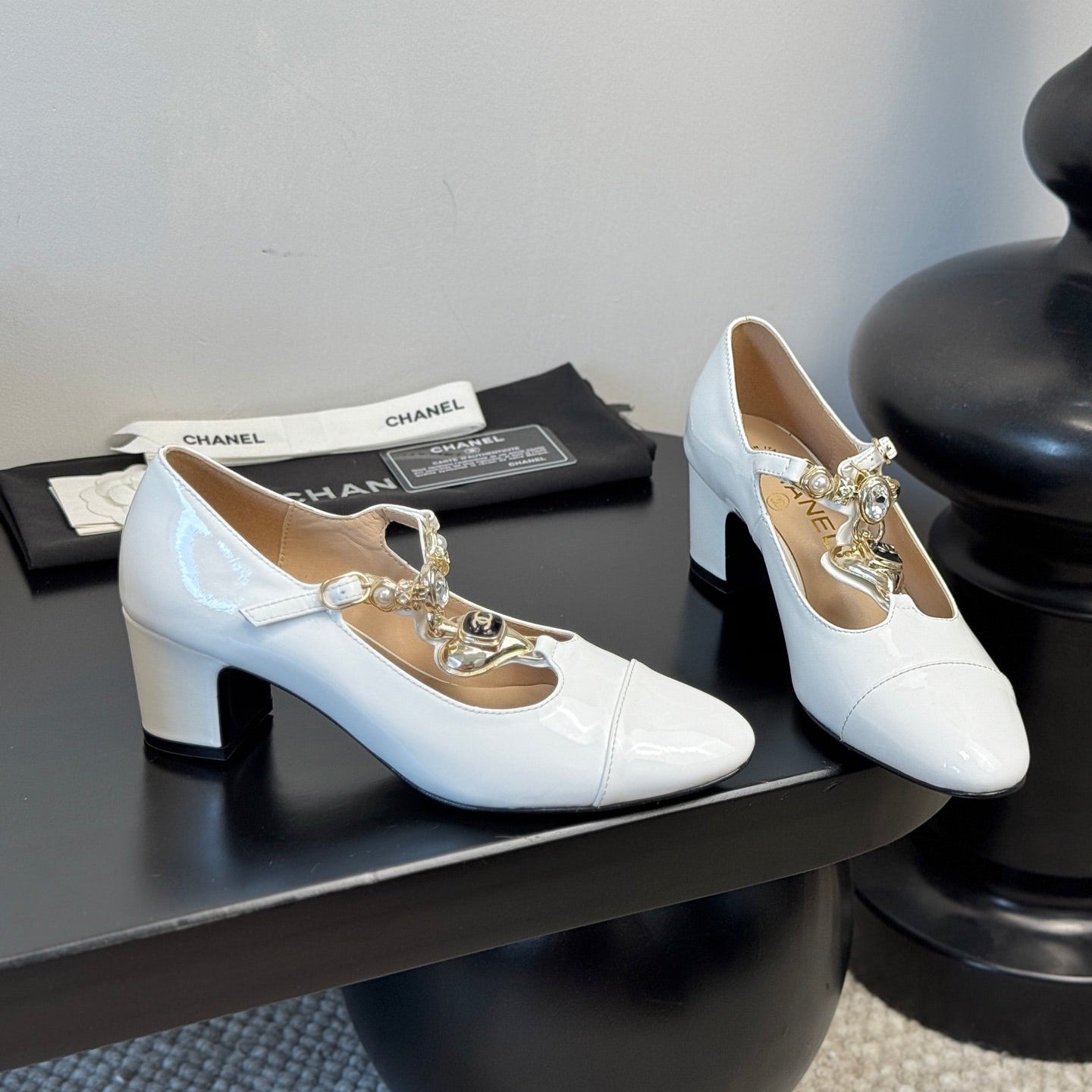 CC 25 Marry Jane White Glossy Lambskin 329764