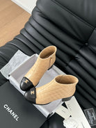CC SHORT BOOTS 65 MM IN SEPIA BEIGE MIX BLACK QUILTED PATTERN LAMBSKIN