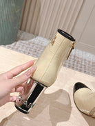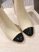 CC high-heeled ankle boots beige black patent calfskin 532832