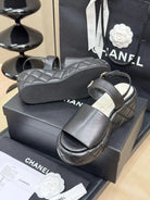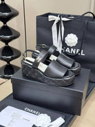 CC HIGH WEDGE SANDALS IN BLACK LAMBSKIN