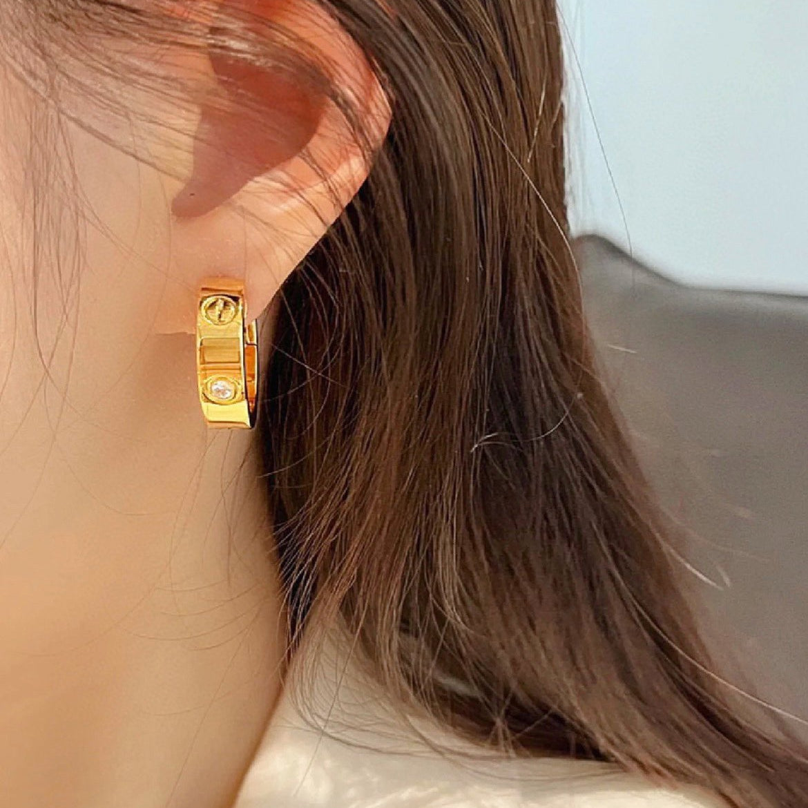 CC LOGO EARRINGS SMALL SILVER DIAMOND