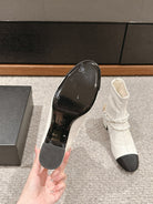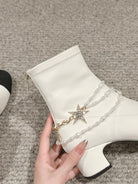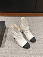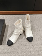 CC LOW CUT BOOTS IN WHITE STRETCH LAMBSKIN AND GROSGRAIN WITH PEARL CHAIN