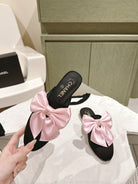CC MULE WITH SILK LIGHT PINK BOW AND BLACK LAMBSKIN