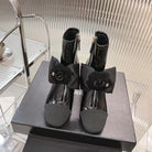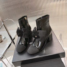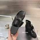 CC Short Boots 60mm Glossy Black Camellia Cowhide