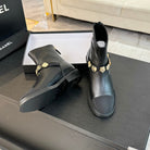 CC Short boots Black Cowhide Mix Fabric Denim
