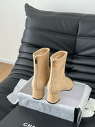 CC Ankle Boot Beige Calfskin Black Patent Calfskin