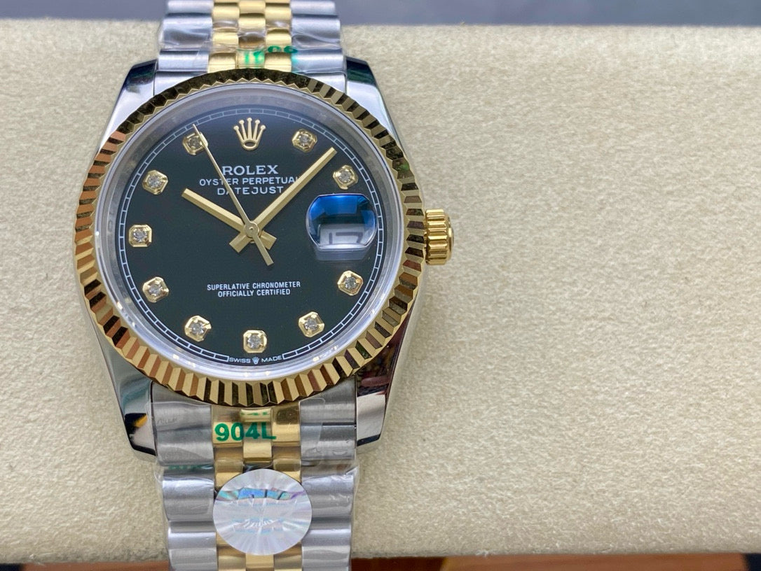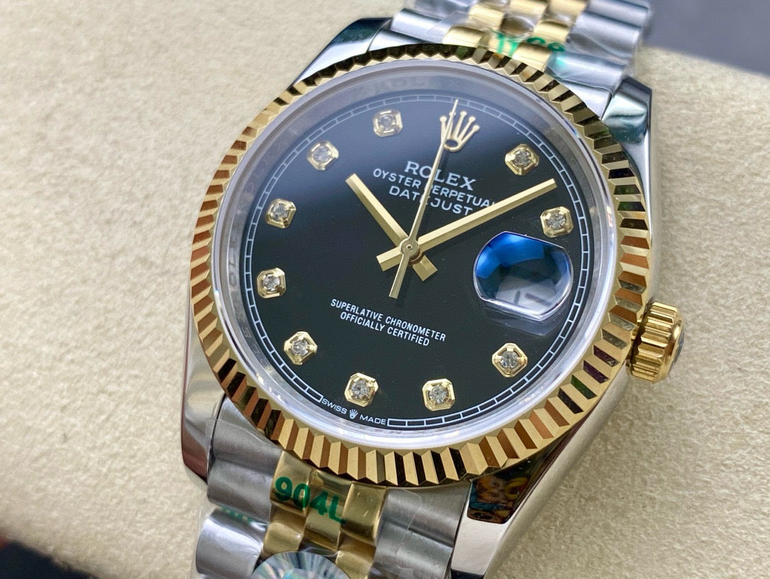 Datejust Black Diamond Dial Two Tone Yellow Gold Jubilee Bracelet