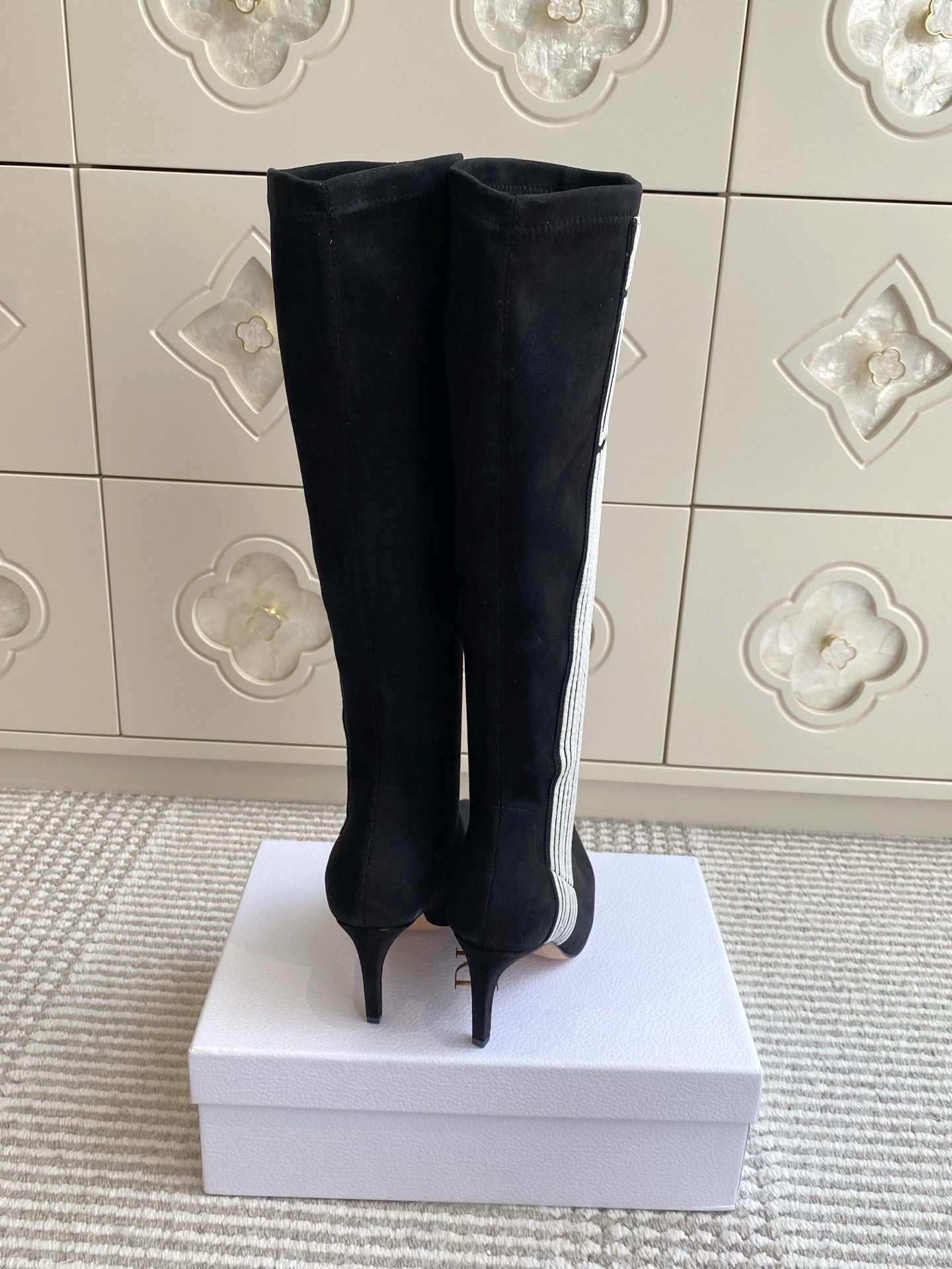 Dior 2025 Tribales Heeled Ankle High Boot 80mm Black White Suede 501198