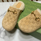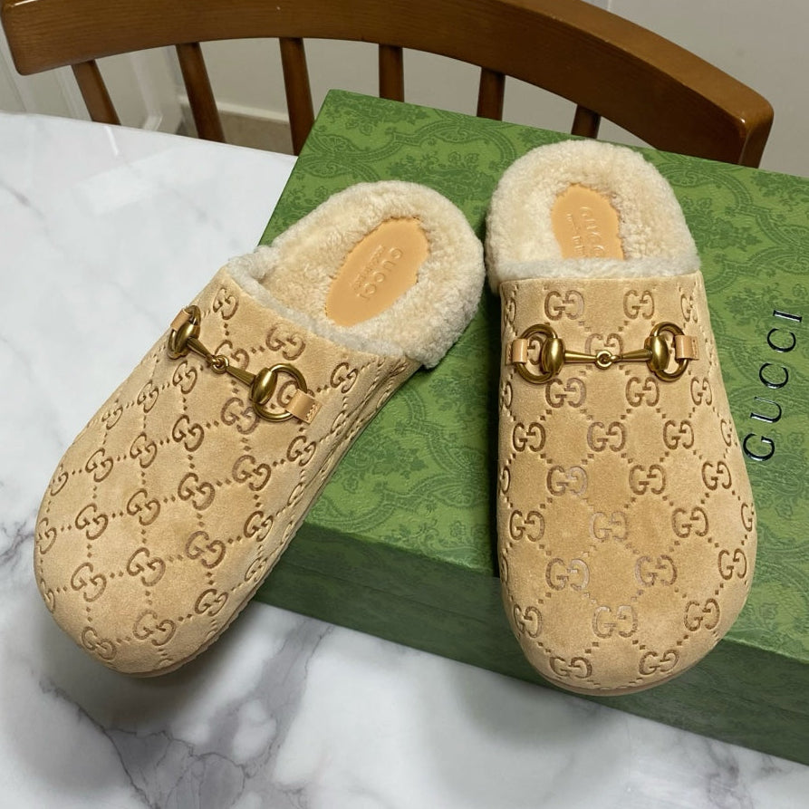 Gucci 2025 Mule Beige White Suede Fur 952595