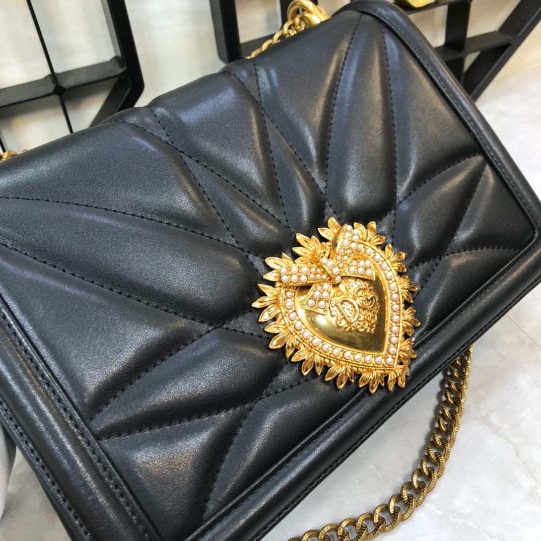 large devotion 26cm shouder bag black qulted cafskin