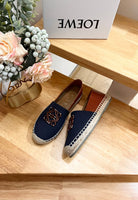Loew Anagram Espadrille Denim Brown Leather and Canvas