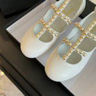 MARY JANES SHOES WHITE GOATSKIN WITH FAUX PEARL