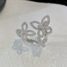TRIPLE BUTTERFLY SILHOUETTE SILVER DIAMOND RING