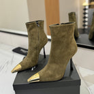 YSL 25 Metal Toe Short Boot Olive Green Gold Suede 520785