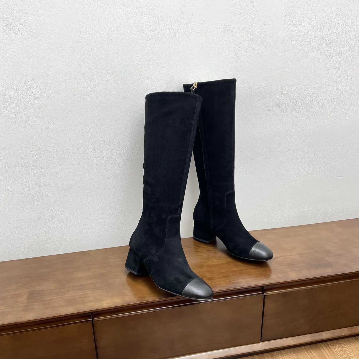 CC High Boots 45mm Black Denim Fabric And Quilted Cowhide