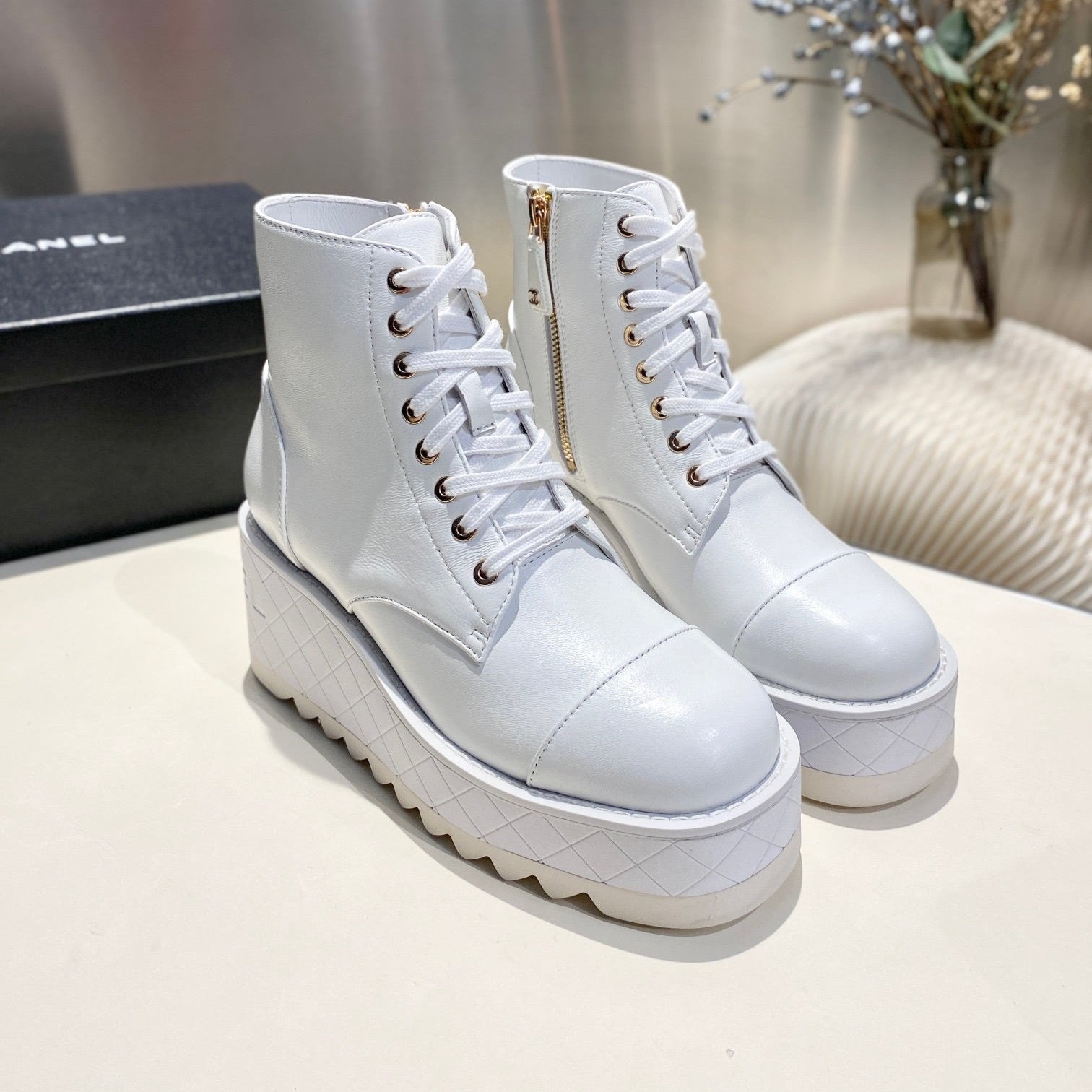 CC Short Boots 30mm White Cowhide