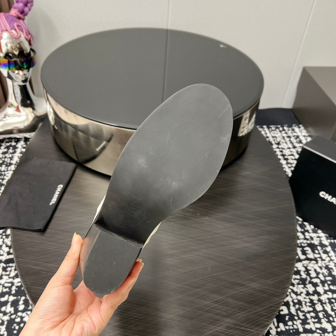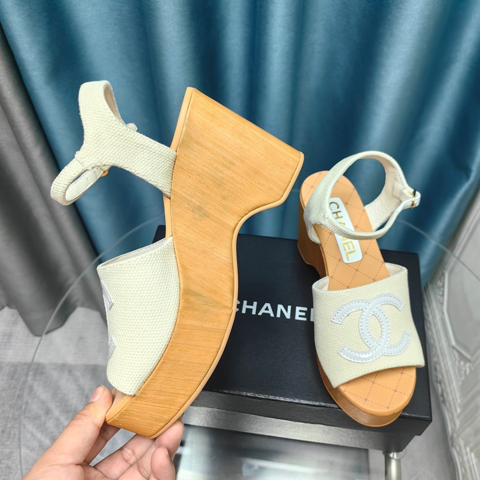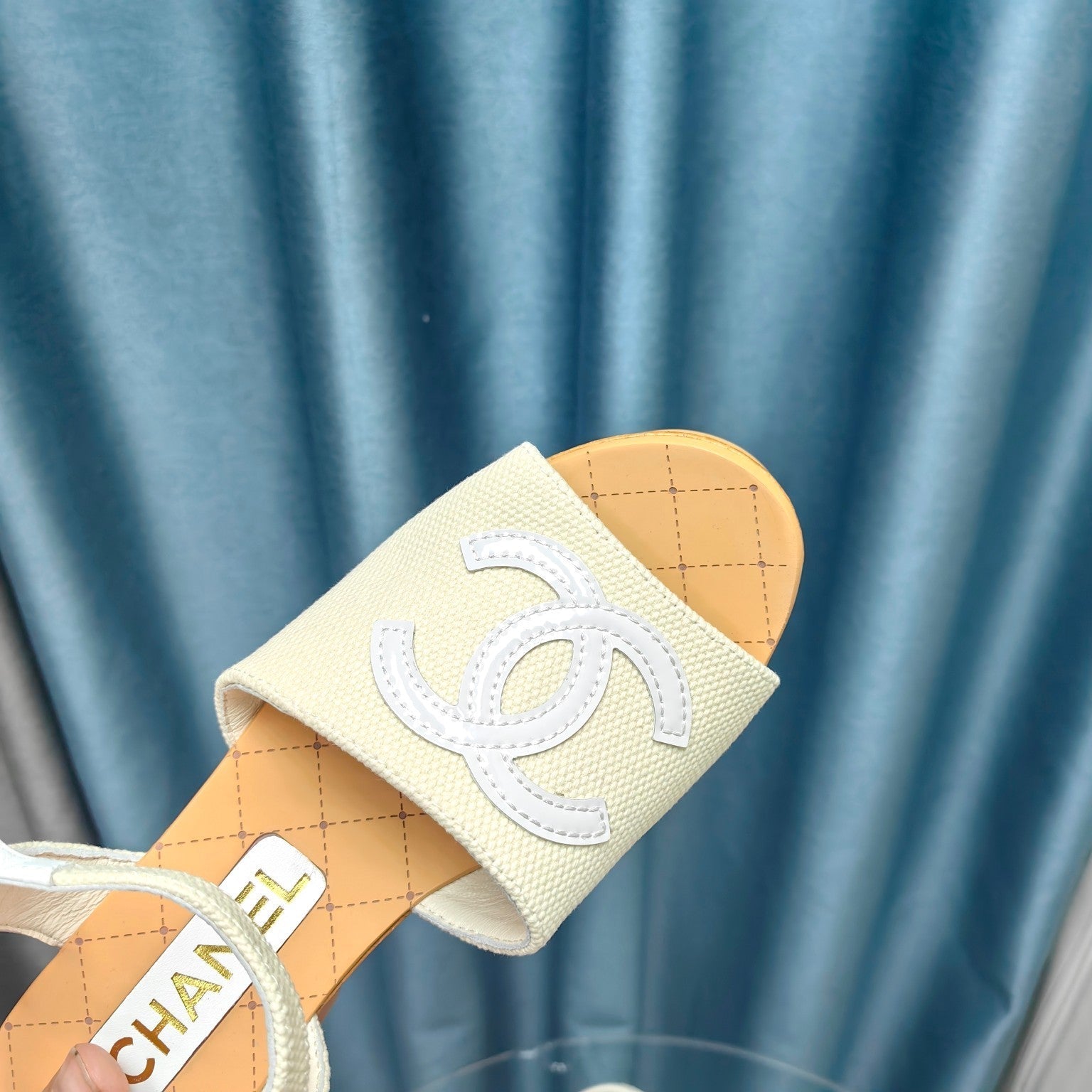 cc espadrilles beige black woolen cloth silver metalic lambskin