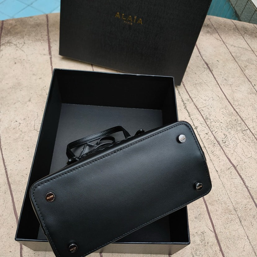 ALAIA Medium Hobo Flat Bag Metal Rivet Black Calfskin 243053