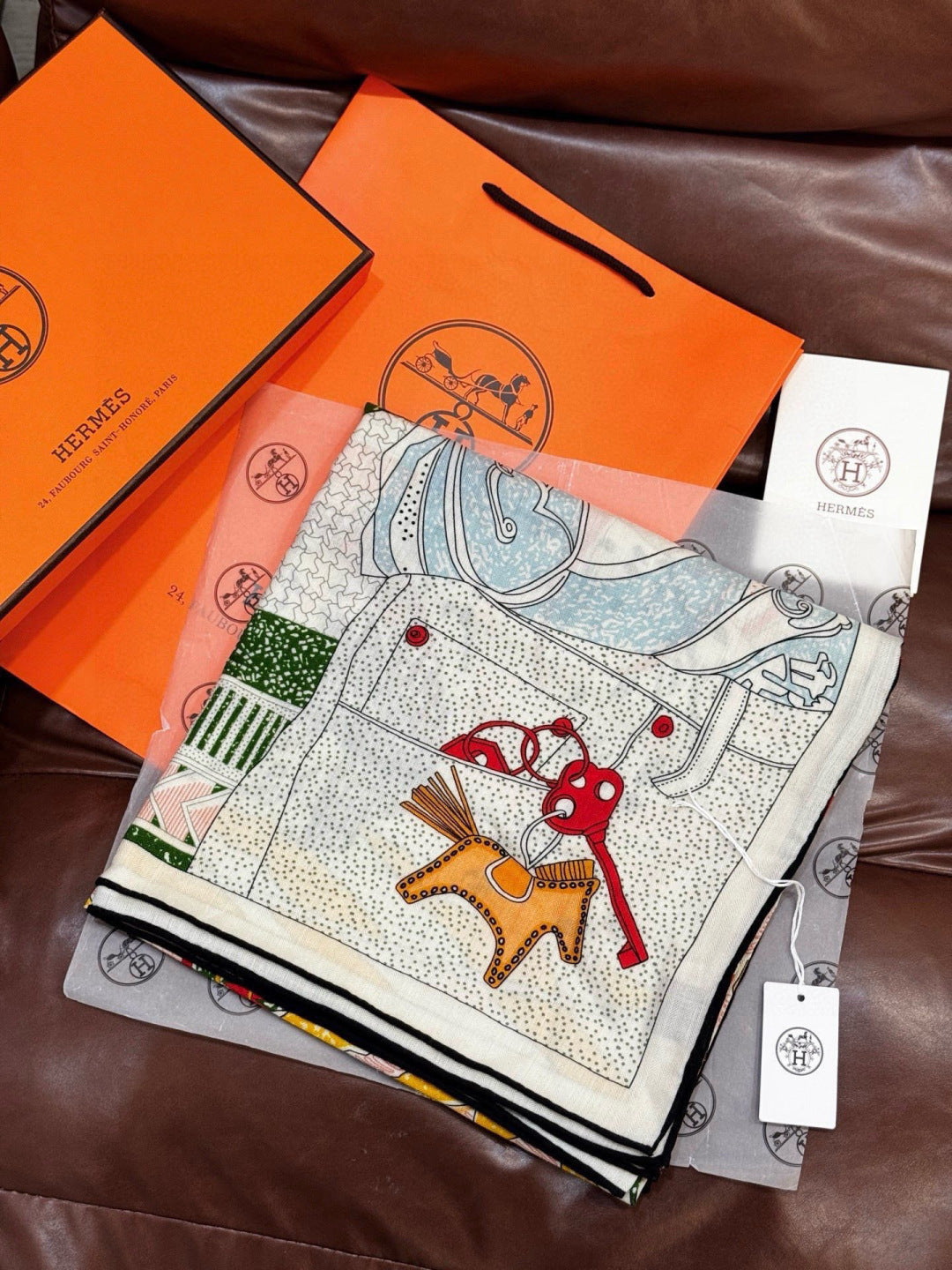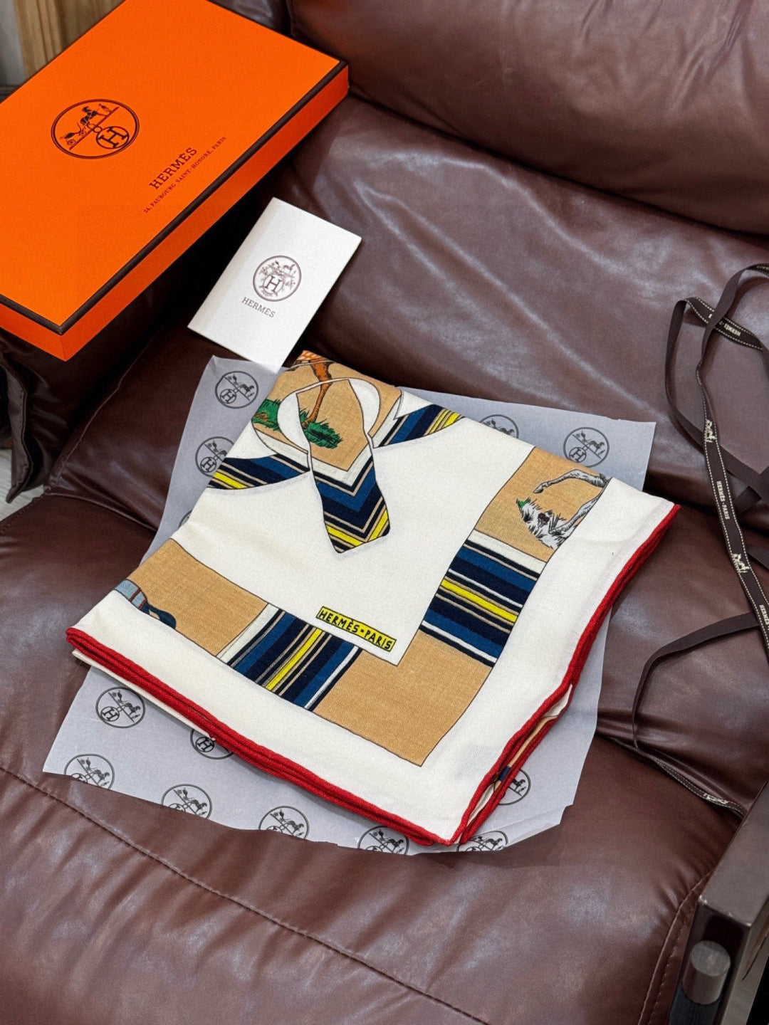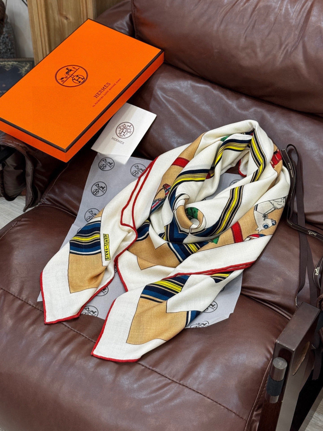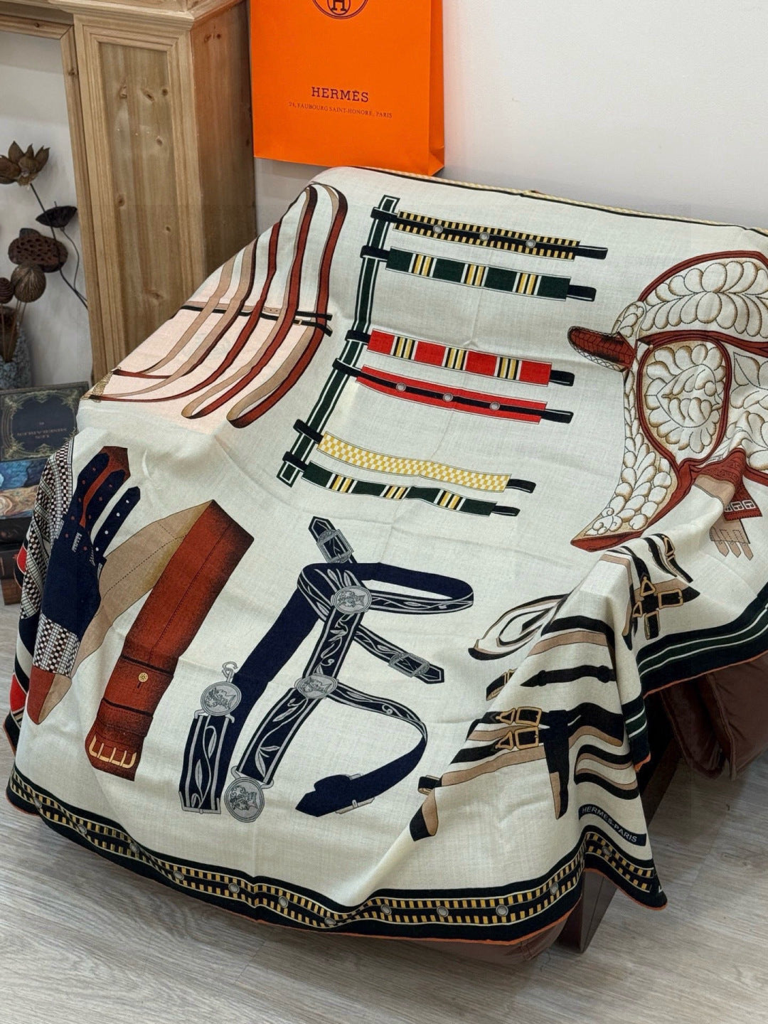 HM 25s Golden Spurs Scarf 140cm White Beige Cashmere 976282