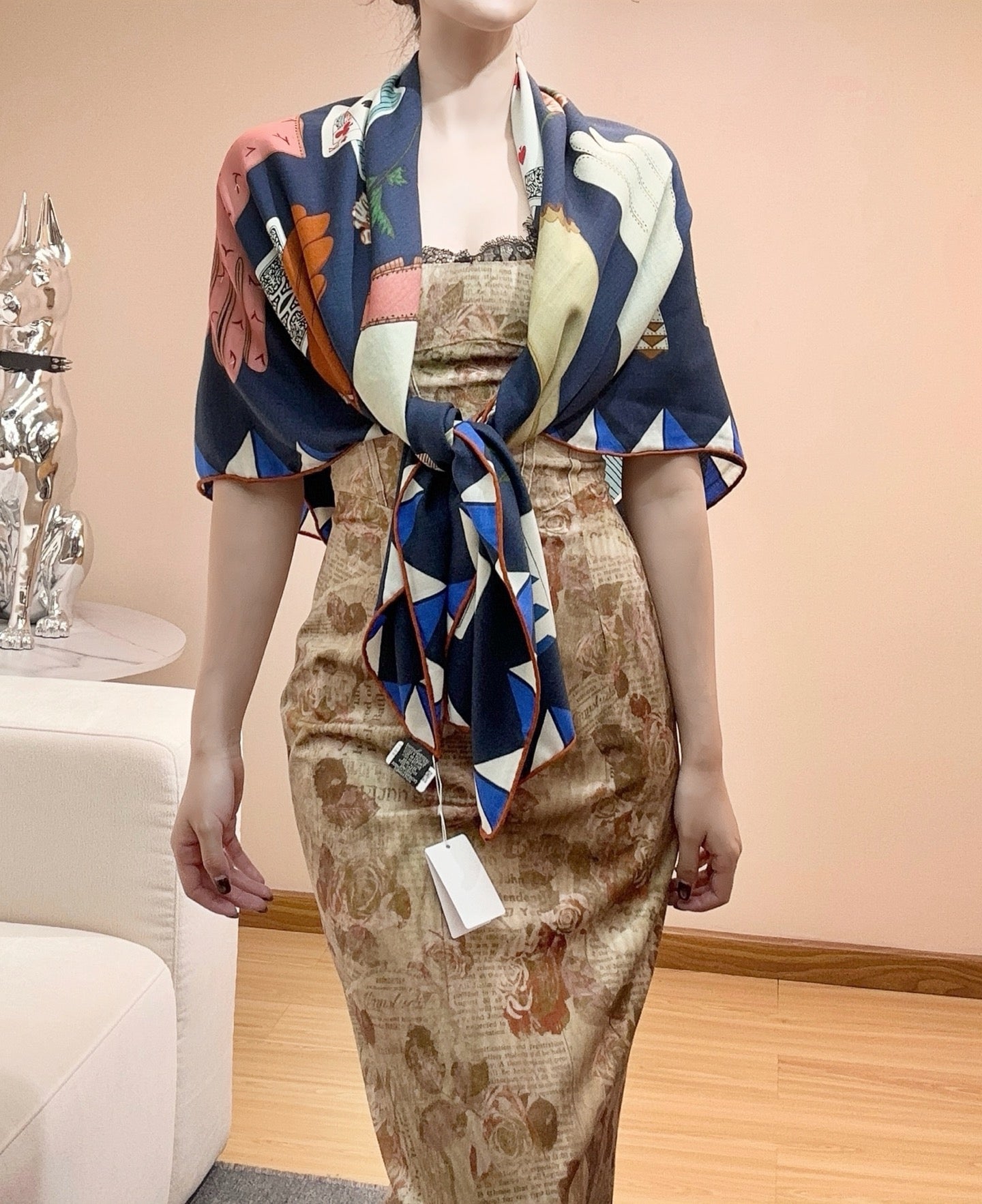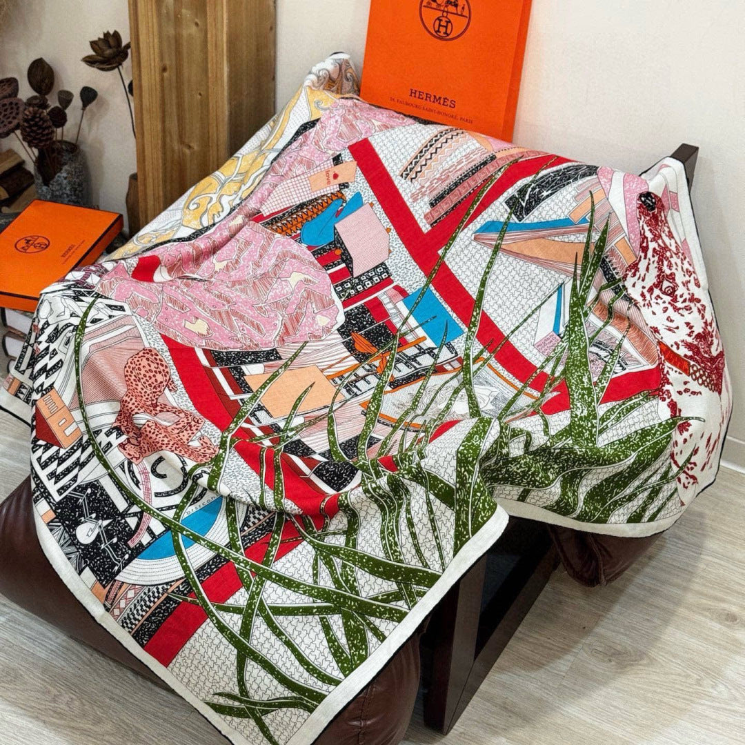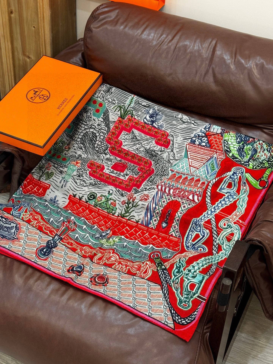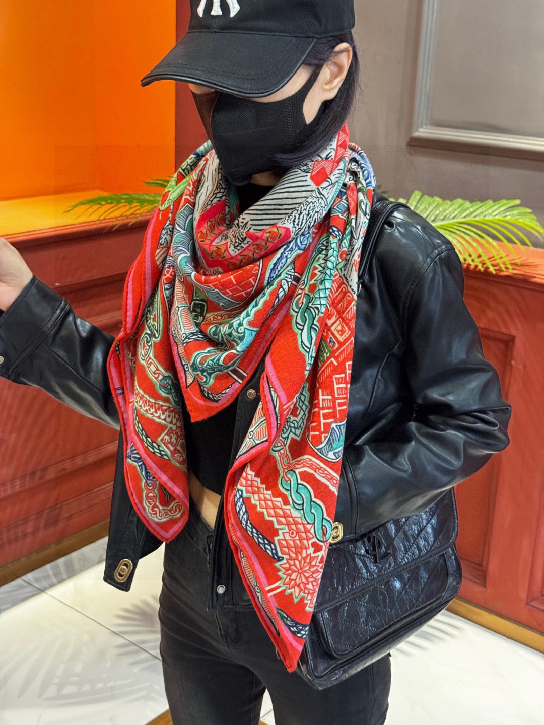 HM 25s Essential Scarf 140cm Red Colorful Cashmere Silk 968742