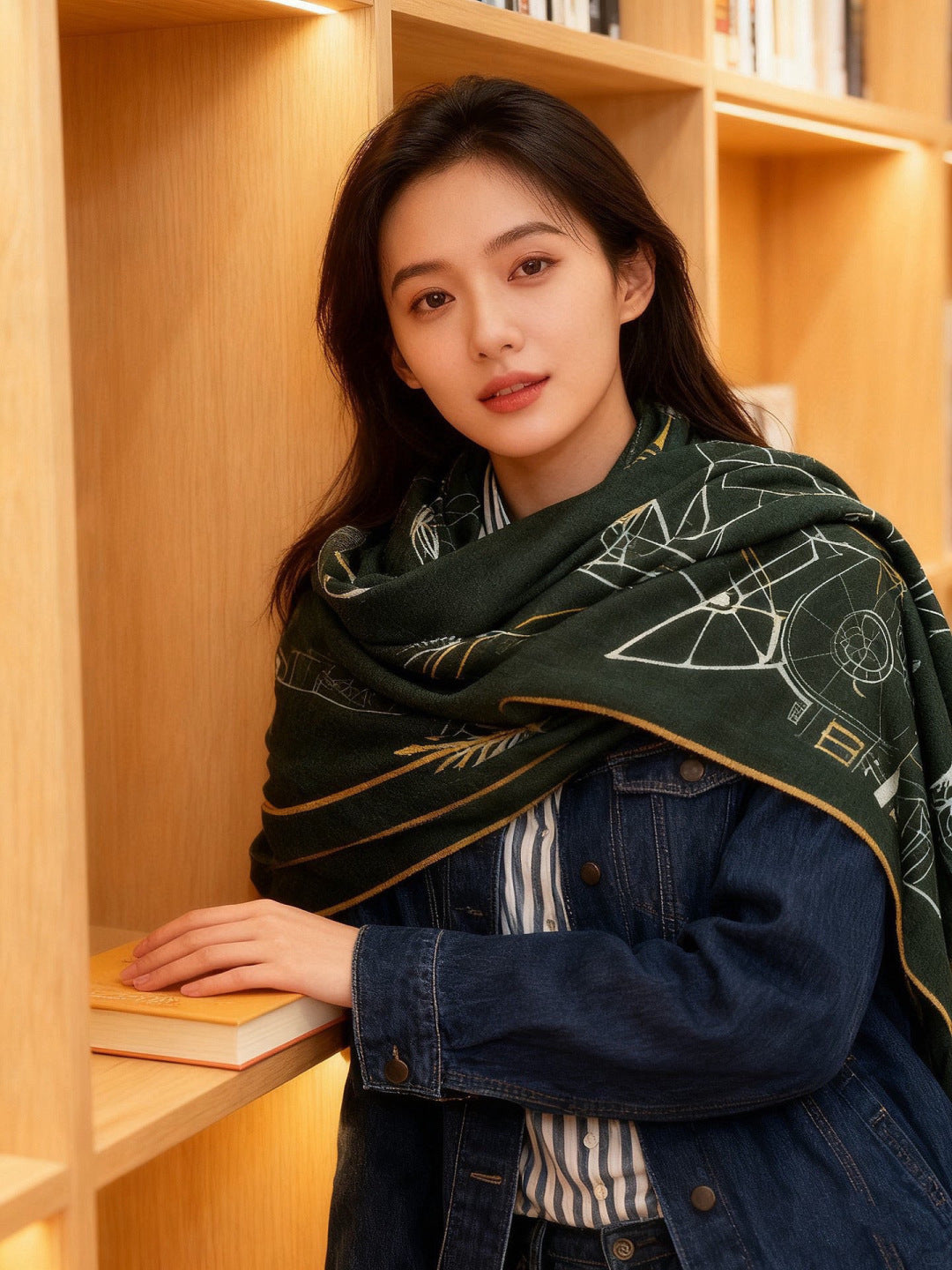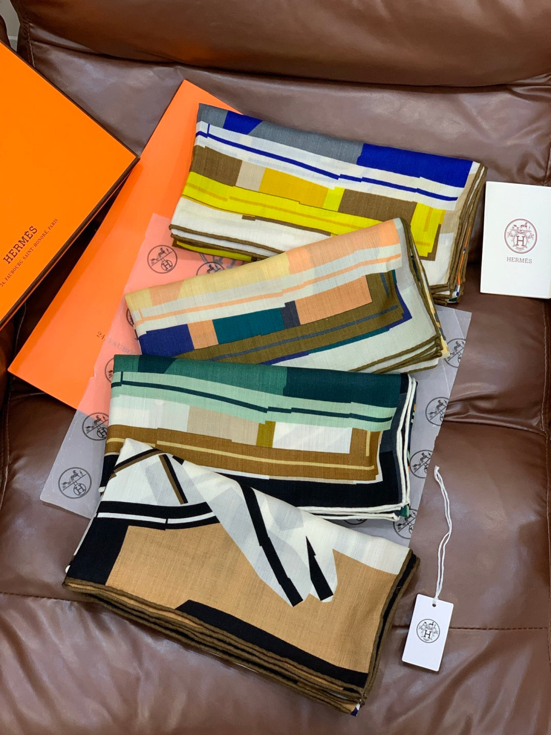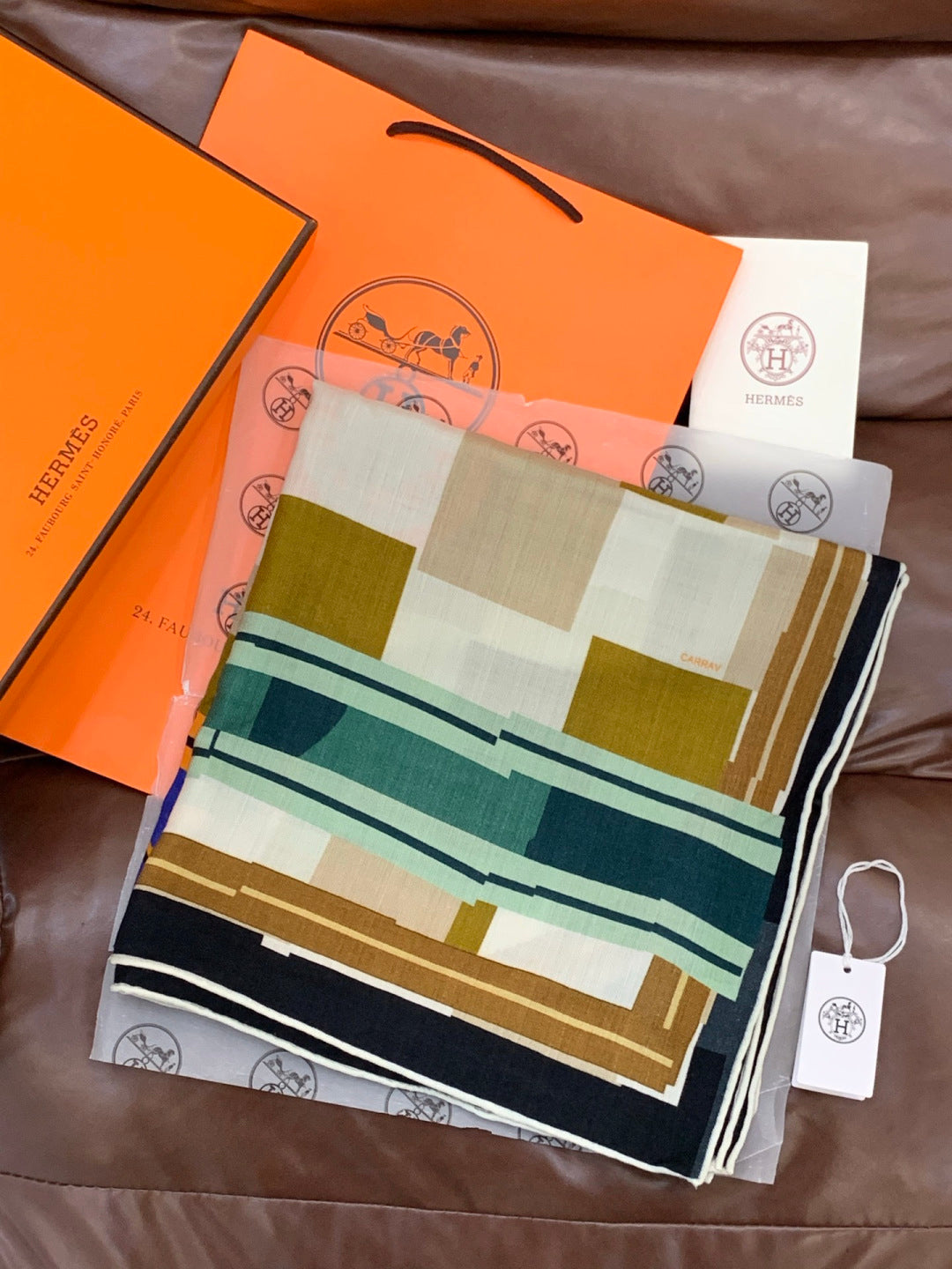 HM 25s Essential Scarf 140cm Green Colorful Cashmere Silk 967425