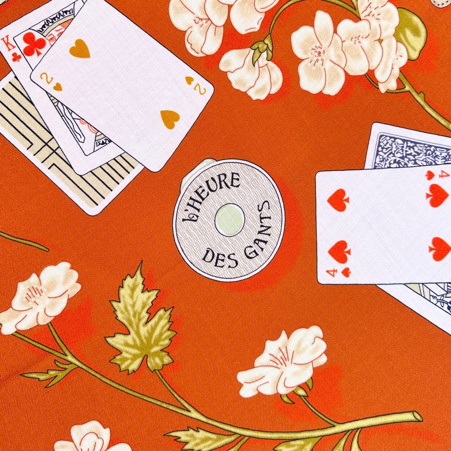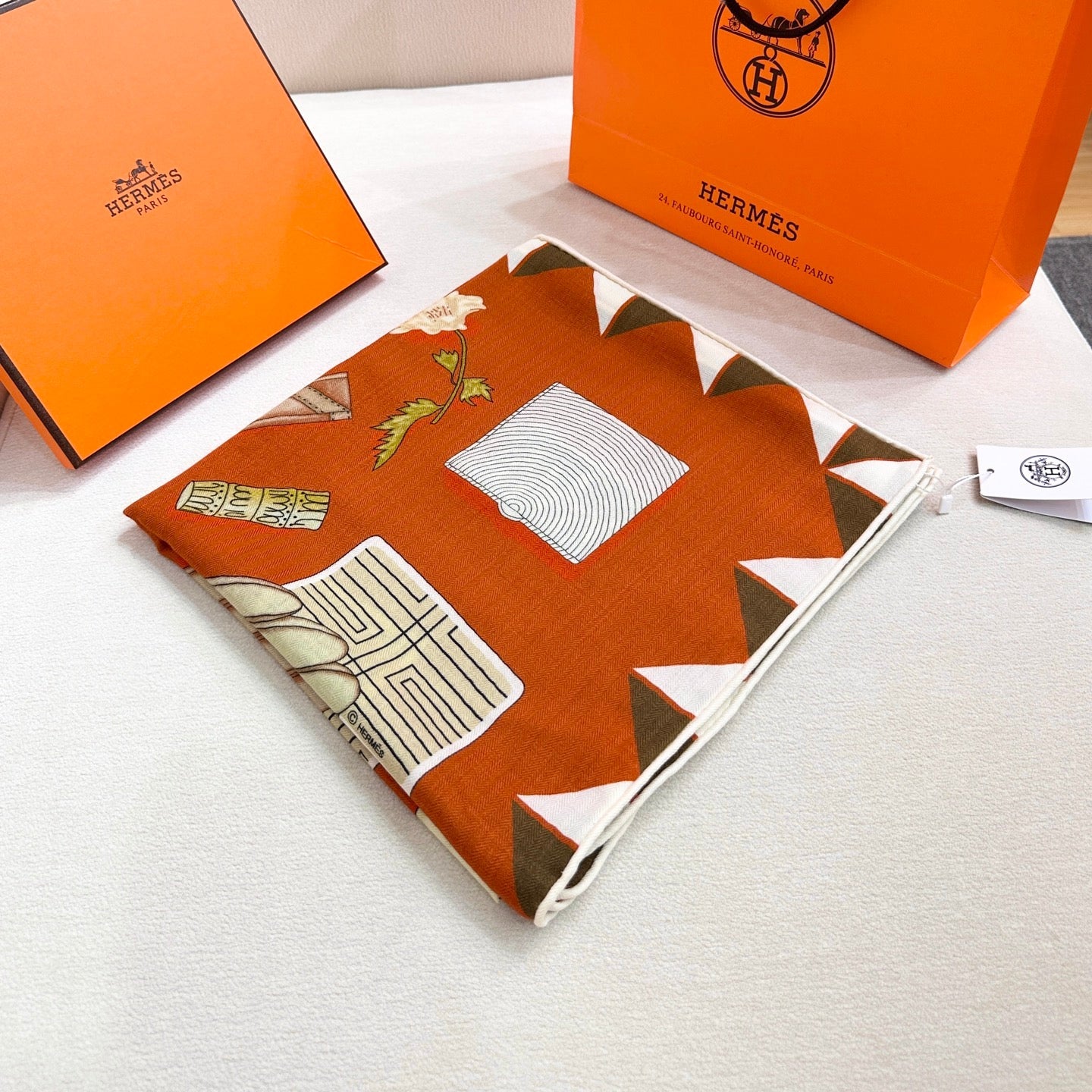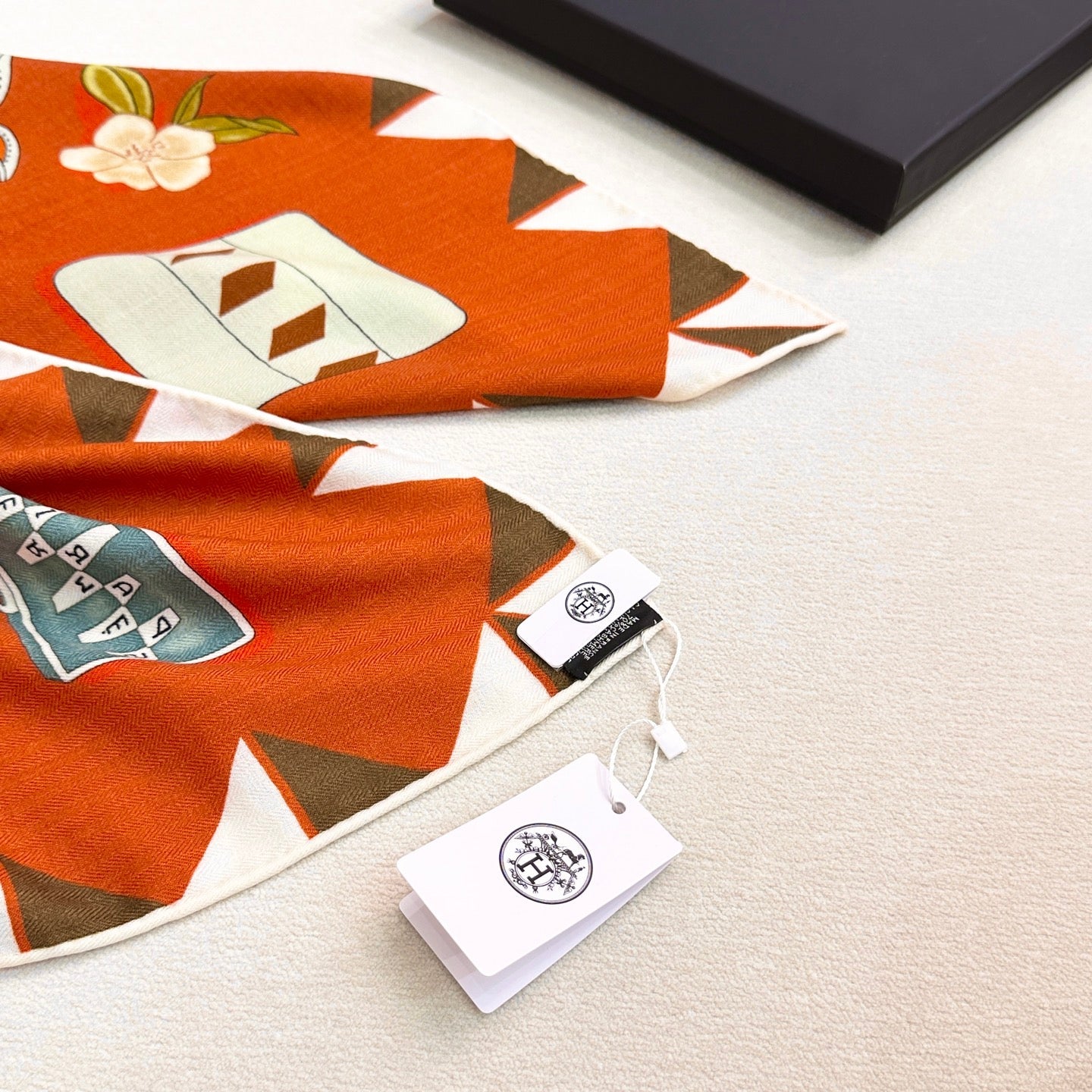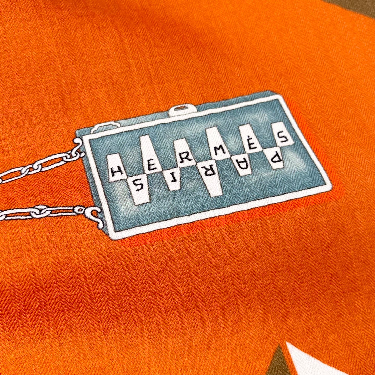 HM 25s Checkered Horse Scarf 140cm Orange Yellow Cashmere Silk 970932
