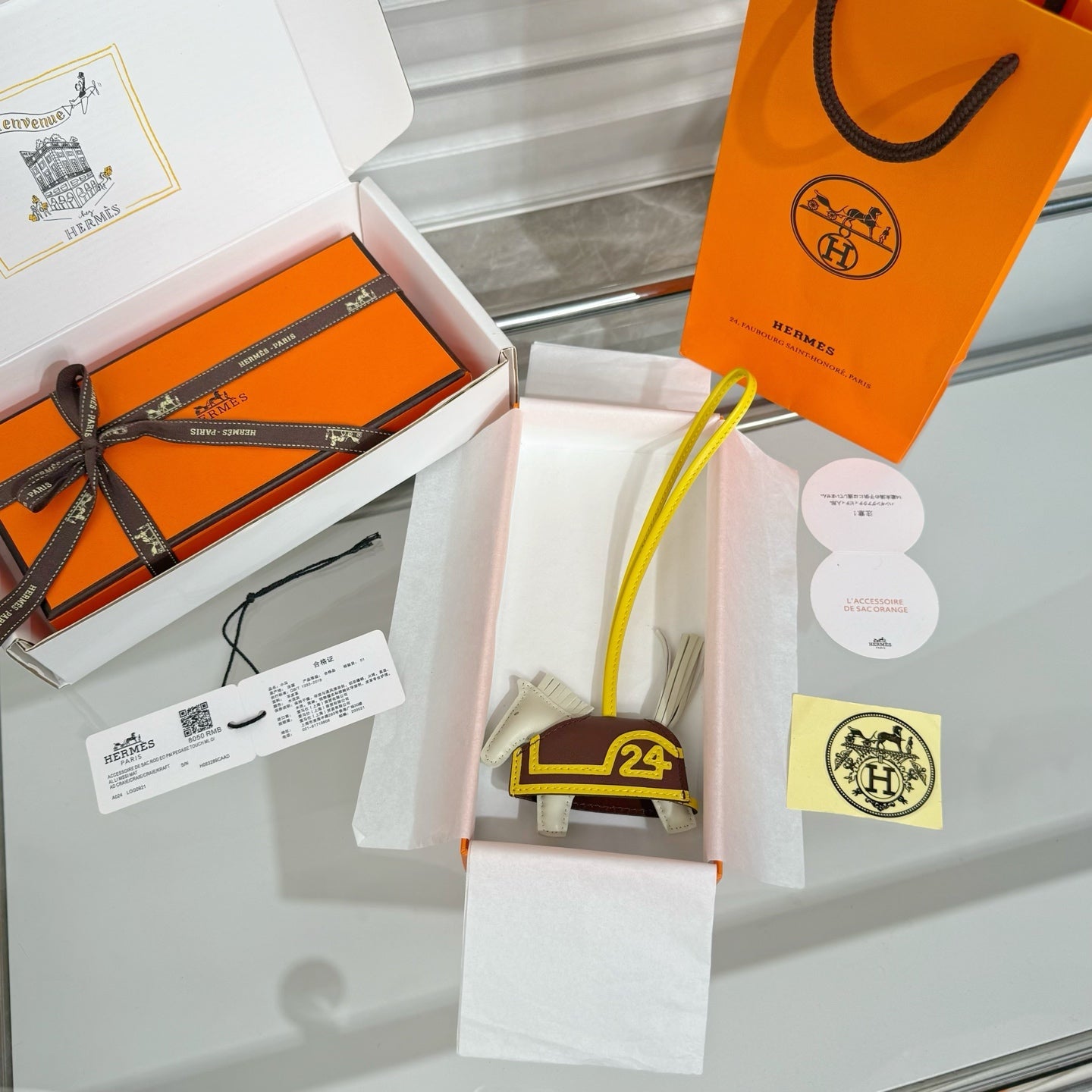 HM Rodeo Pegase Bag Charm Orange Lambskin