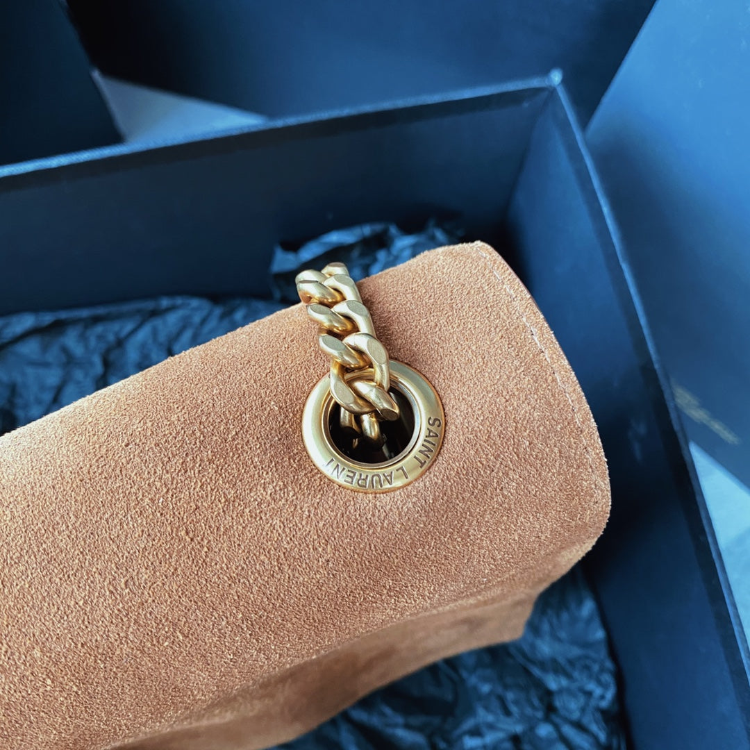 KATE SMALL BAG 22 IN PEANUT BROWN RABBIT FUR GOLD CHAIN